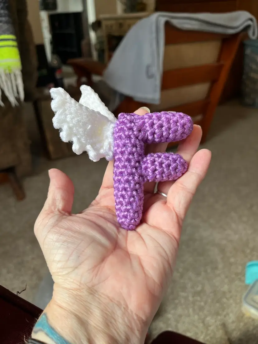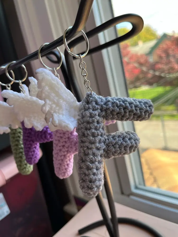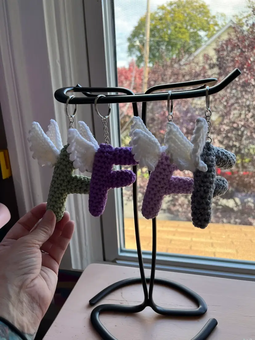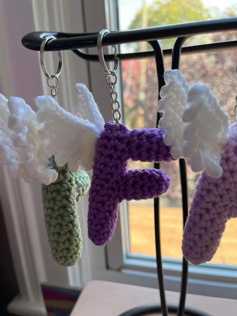 Pick one naughty Flying F. Green, purple, lilac or sparkly silver. Made by me crochet key chain