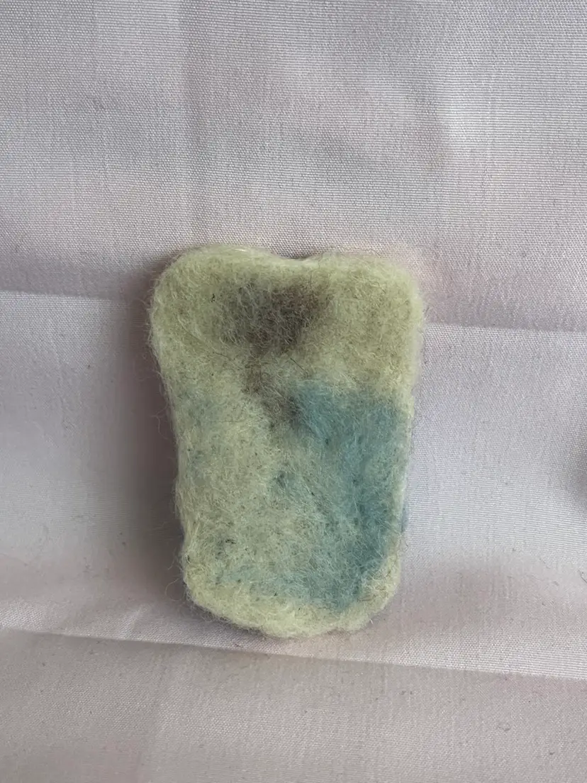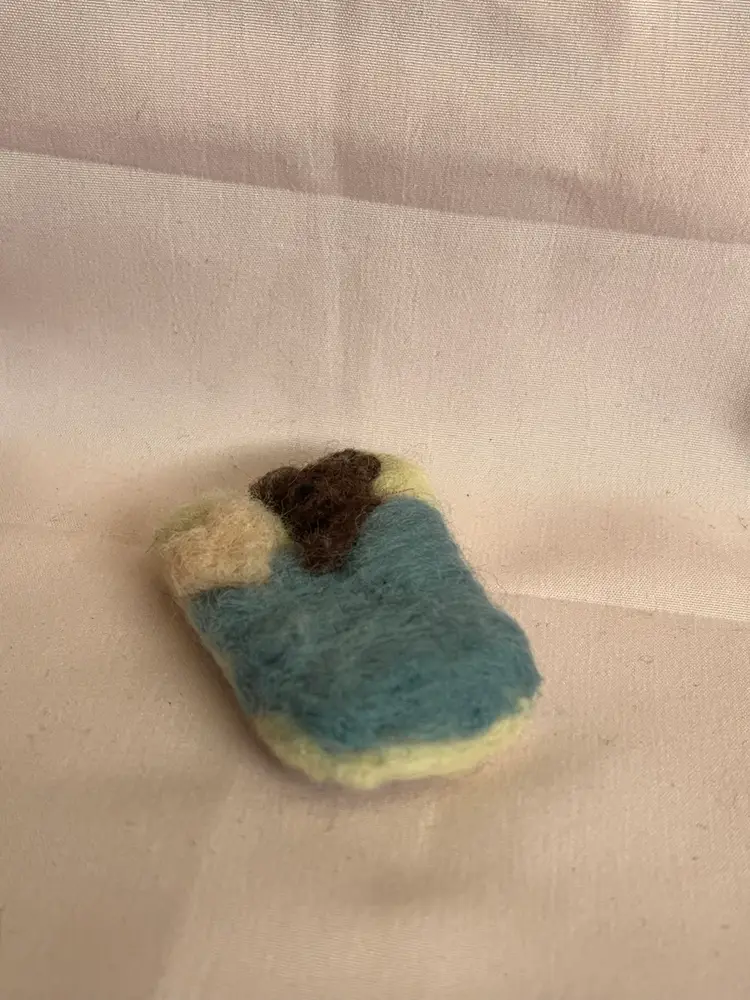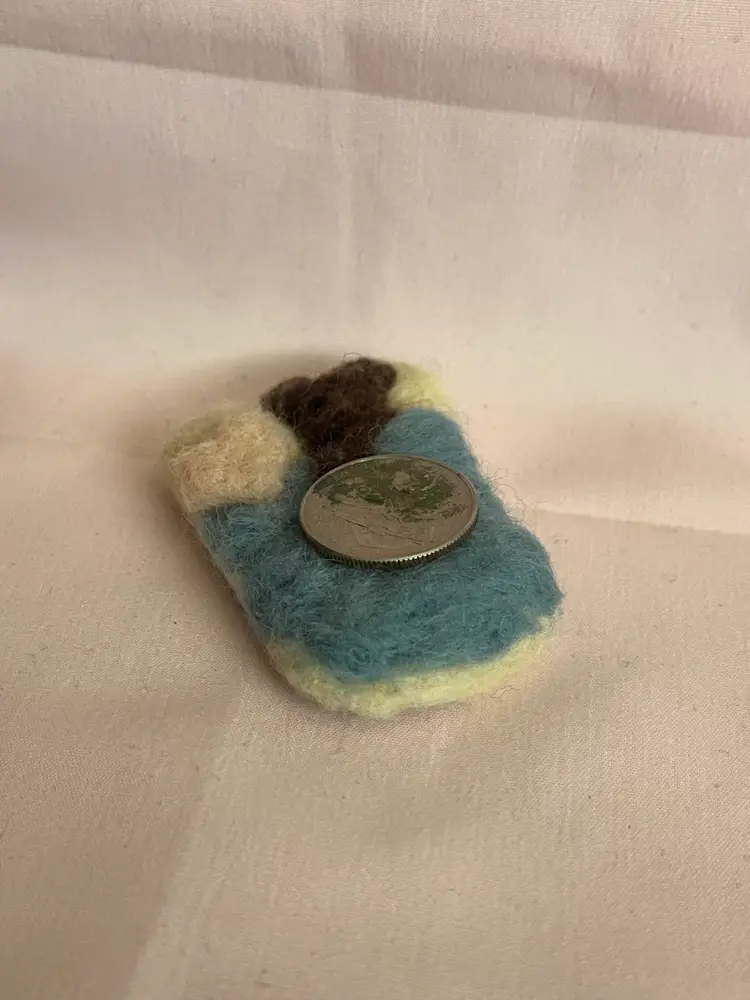 Handmade by me Do not buy if you are allergic to wool; product is 100% wool Quarter for scale