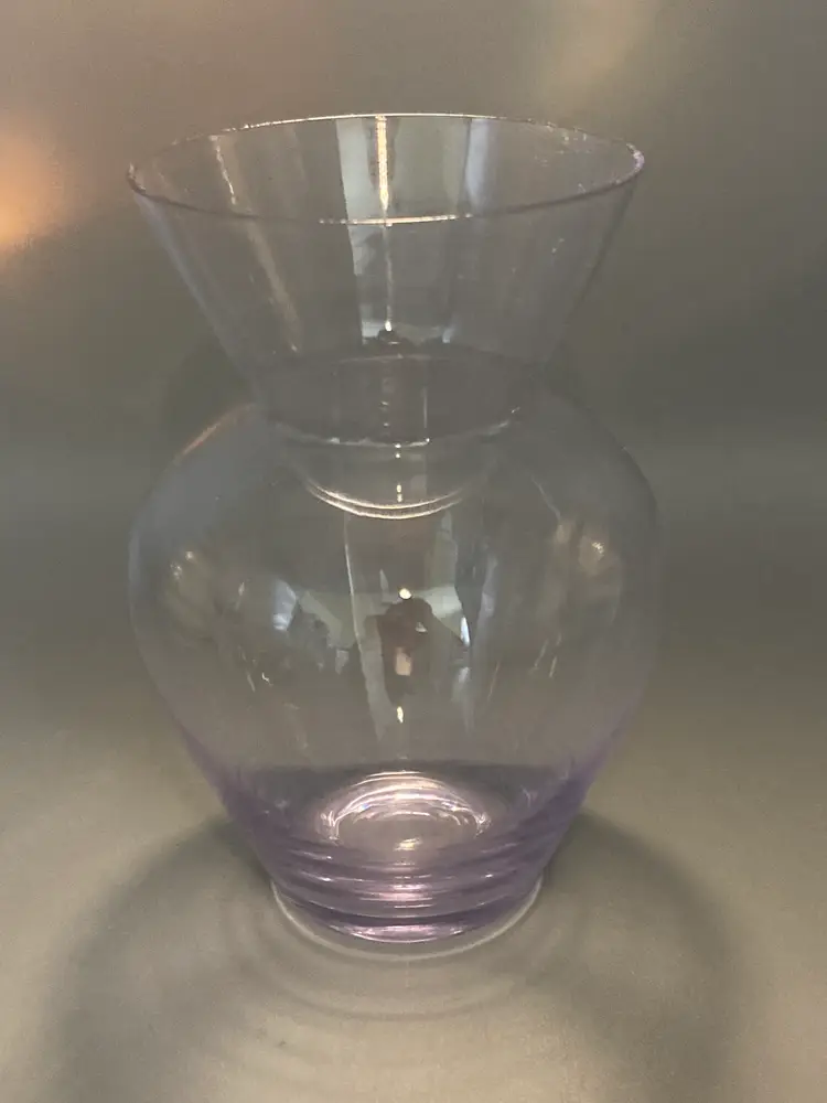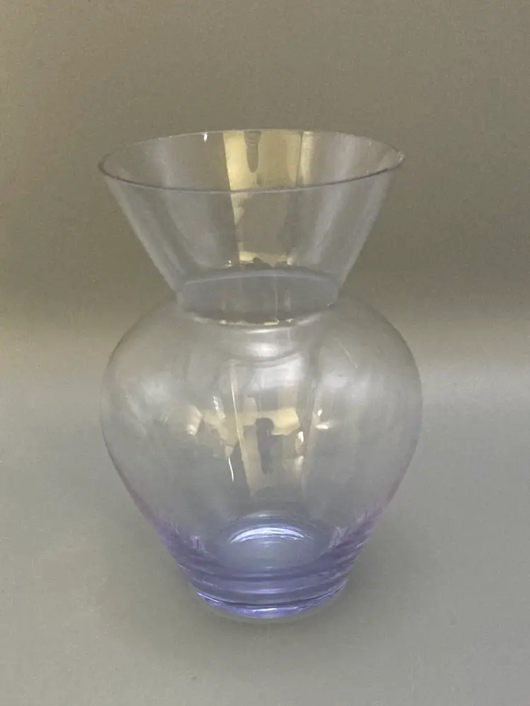 This vase is in good condition. It measures approximately 5" tall x 3 1/2" wide at the widest point x 2 3/4" wide at the top / opening.