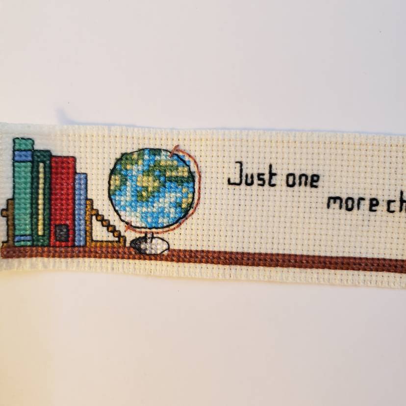 Cross-stitched bookmark stitched on ivory Aida cloth 1 1/2" by 9".