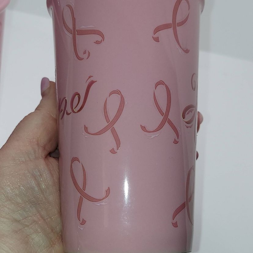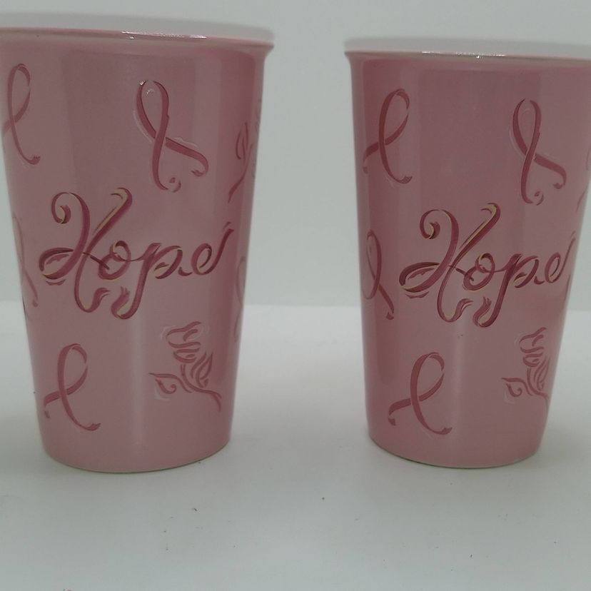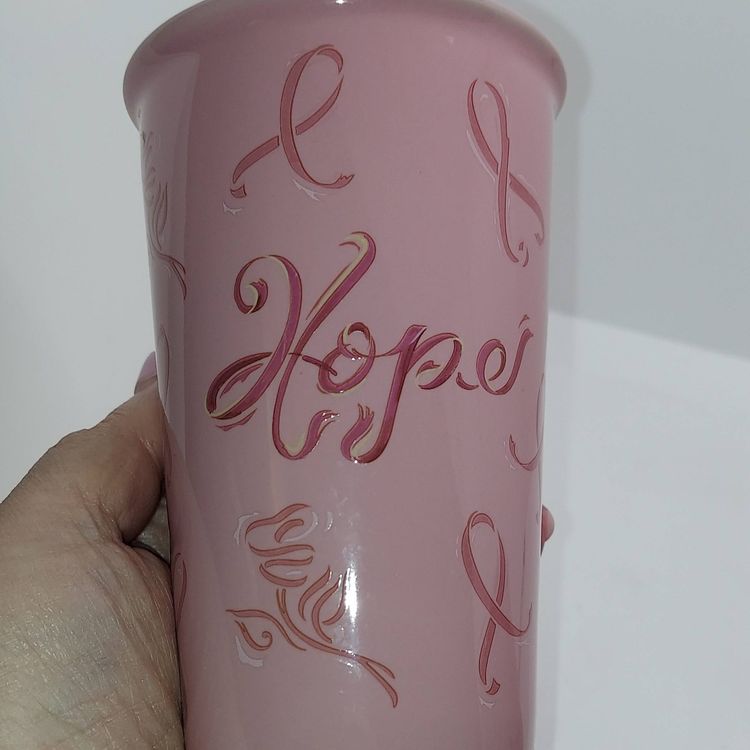 The Longaberger 2011 Horizon of Hope Breast Cancer Pink Ceramic Mug is a limited edition, decorated coffee mug set featuring a round shape and a pink color with a rose, ribbon and Word Hope pattern. This two-piece set is suitable for both hot and cold beverages and is perfect for occasions such as Breast Cancer Awareness Month. The mug is crafted with ceramic and porcelain materials and bears the original Longaberger brand, making it a contemporary piece with a theme focused on breast cancer awareness. Ideal for unisex adults, this medium-sized mug set is a heartfelt way to show support for a loved one during challenging times.
