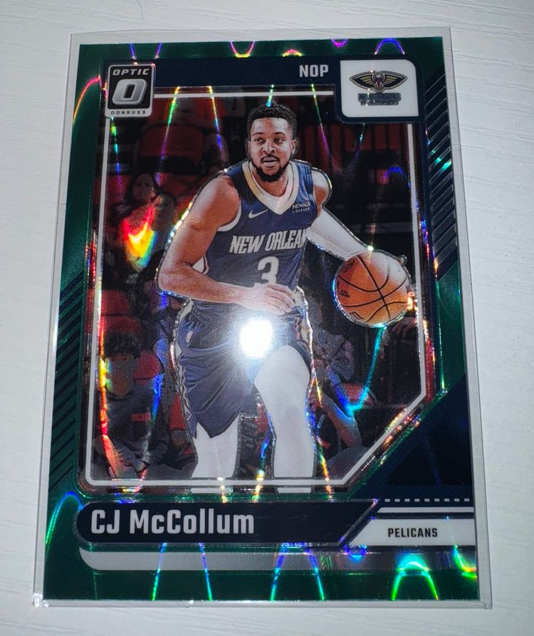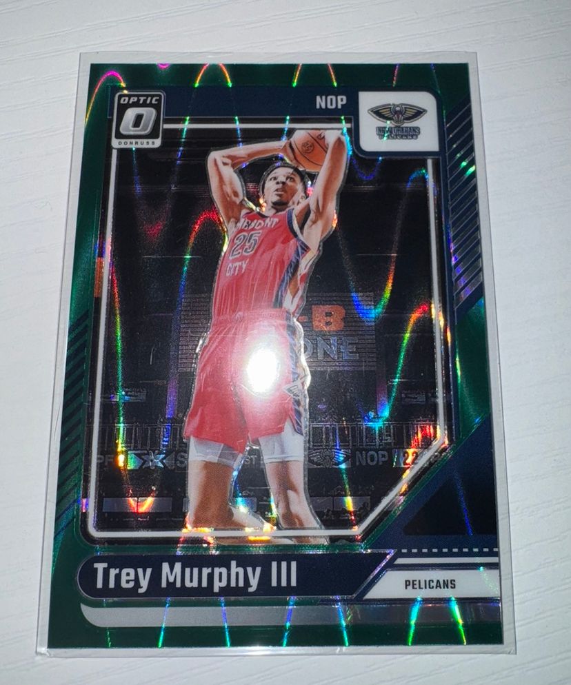This 6 Card Lot Includes: Yves Missi 2024 Rated Rookie Yellow Flood Derik Queen 2025 Topps Flagship 8 Bit Ballers Foil Zion Williamson 2020 Hoops Frequent Flyers Winter CJ McCollum 2024 Optic Green Seismic Trey Murphy III 2024 Optic Green Seismic Herbert Jones 2024 Optic Green Seismic