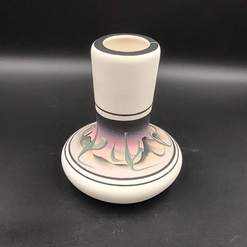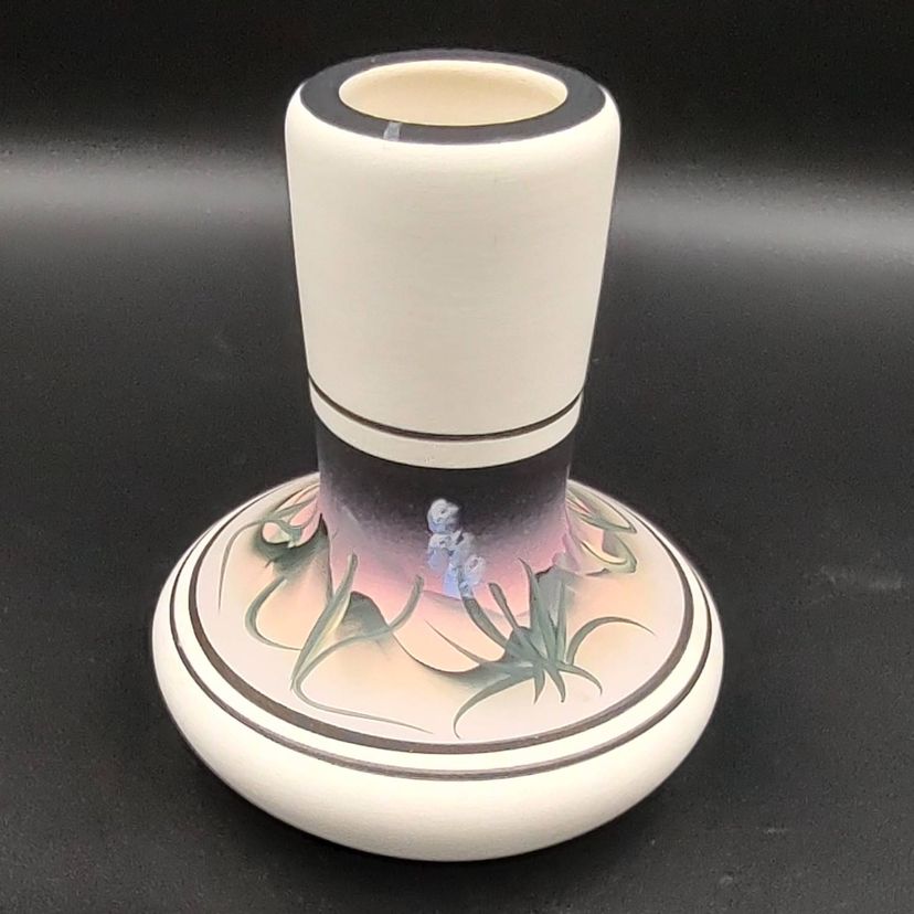 Nee West Art Pottery Hand Painted Vase height 4" x rim 1.5" x base 3.5". Made in the USA