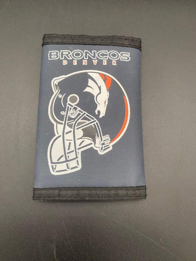 You are purchasing one NFL Denver Broncos Navy Blue Tri-Fold Wallet. See images for all of the storage capabilities of this Wallet. This Wallet is in decent condition with no rips or holes. Just see images for any area of discoloration.