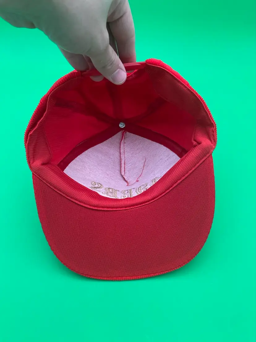 You are purchasing one Adjustable Red NFL San Francisco 49ers Corduroy Snapback Hat. This Hat is in great condition with no rips, holes or stains. No cracking of the Snapback plastic. Missing the manufacturer's tag.