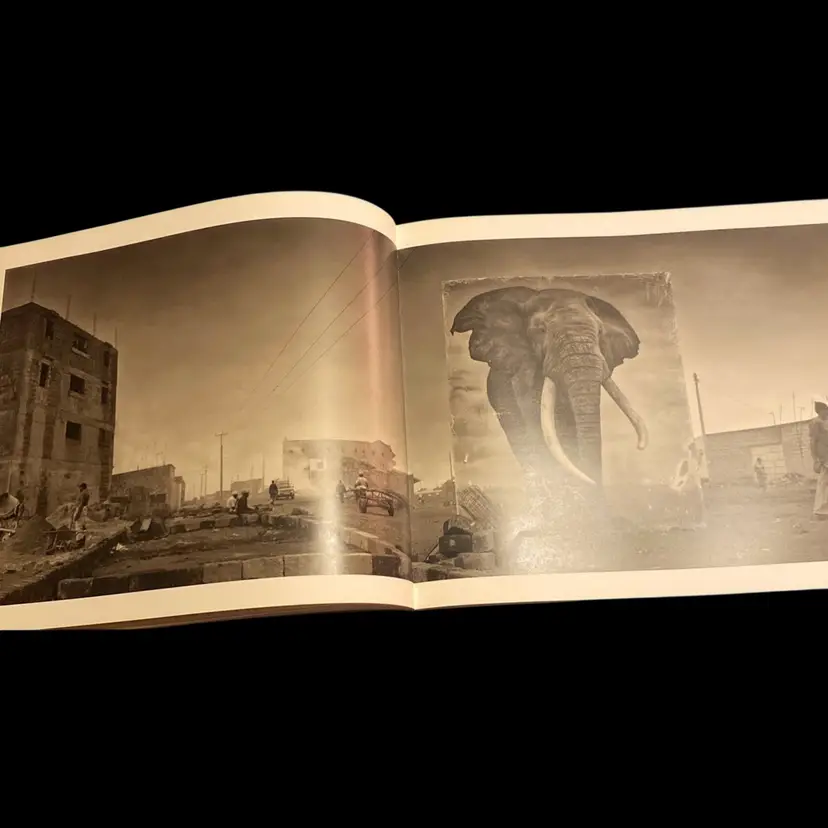 Description: Three years after the completion of his trilogy, On This Earth, A Shadow Falls Across the Ravaged Land, Nick Brandt returned to East Africa to photograph the escalating changes to the continent's natural world and its animals. In a series of epic panoramas, Brandt recorded the impact of man in places where animals used to roam, but no longer do. In each location, Brandt erected a life-size panel of one of his portrait photographs--showing groups of elephants, rhinos, giraffes, lions, cheetahs and zebras--placing the displaced animals on sites of explosive urban development, new factories, wastelands and quarries. The contemporary figures within the photographs seem oblivious to the presence of the panels and the animals represented in them, who are now no more than ghosts in the landscape.