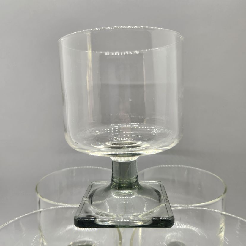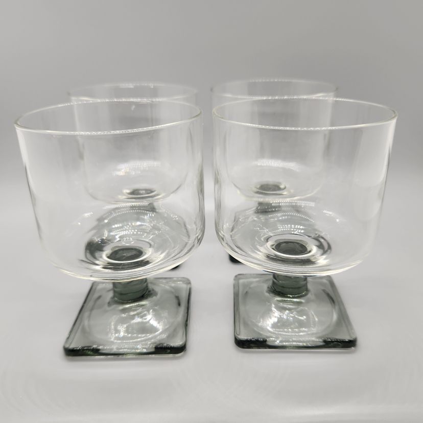 Dramatic mid century modern set of 4 wine / cocktail glasses made by Federal Glass (USA), "Nordic" pattern and the name of the color is Midnight Smoke. Made in the 1960s they have clear glass bowls on a square smoke gray base. Pattern is very similar to the Georg Jensen Rosenthal Linear Smoke glasses, but have a slightly smaller base. I have other sizes so please check my other listings.
