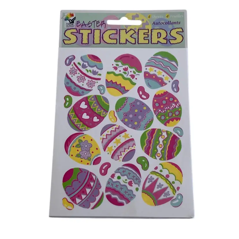 New old stock Color Clings package of stickers with Easter egg designs. Each package contains 4 sheets. #6209000.