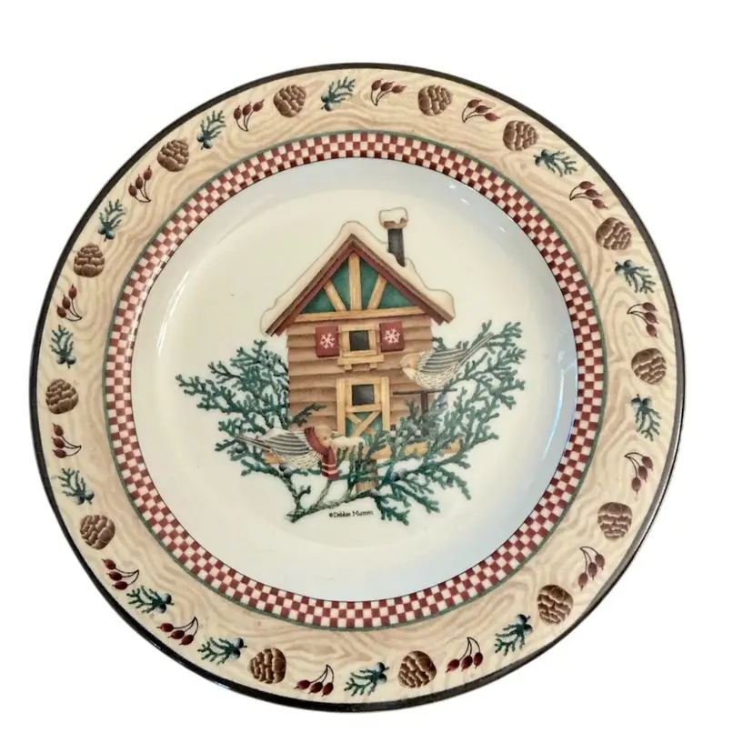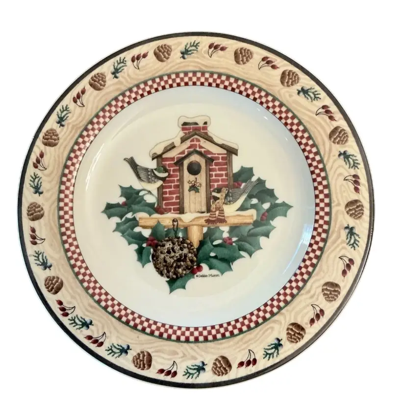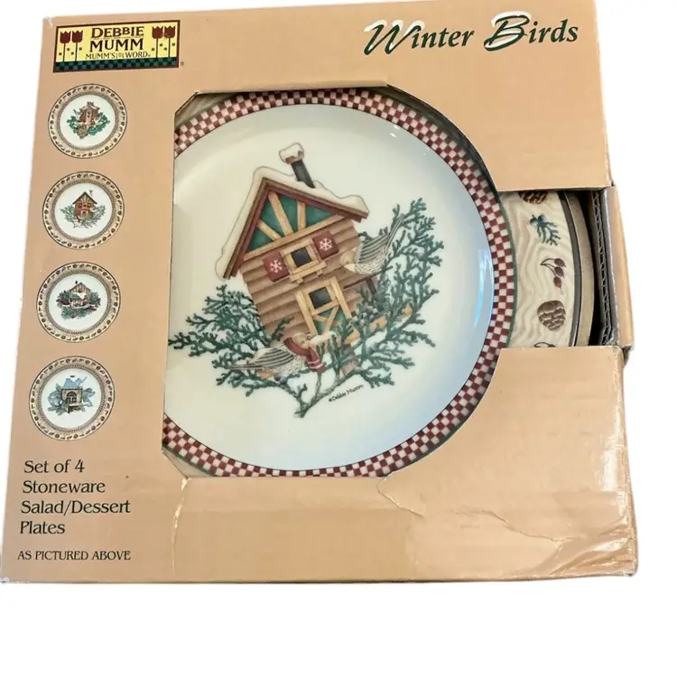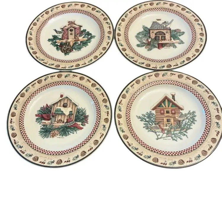 Discontinued vintage design in 2000 set of four ceramic plates by Sakura. 7 1/2” diameter. All are in perfect condition.