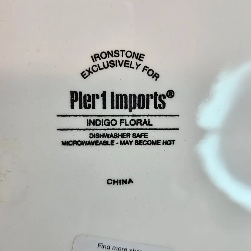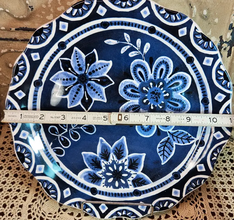 NWT Pier 1 Imports Indigo Floral Dinner Plate Blue Black White 11"