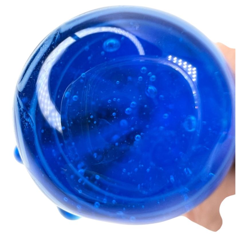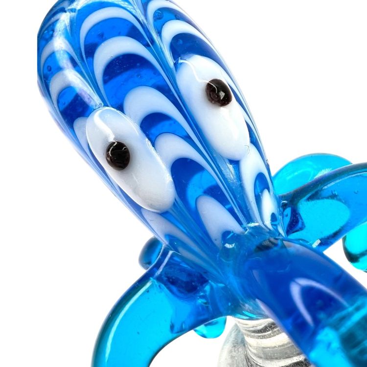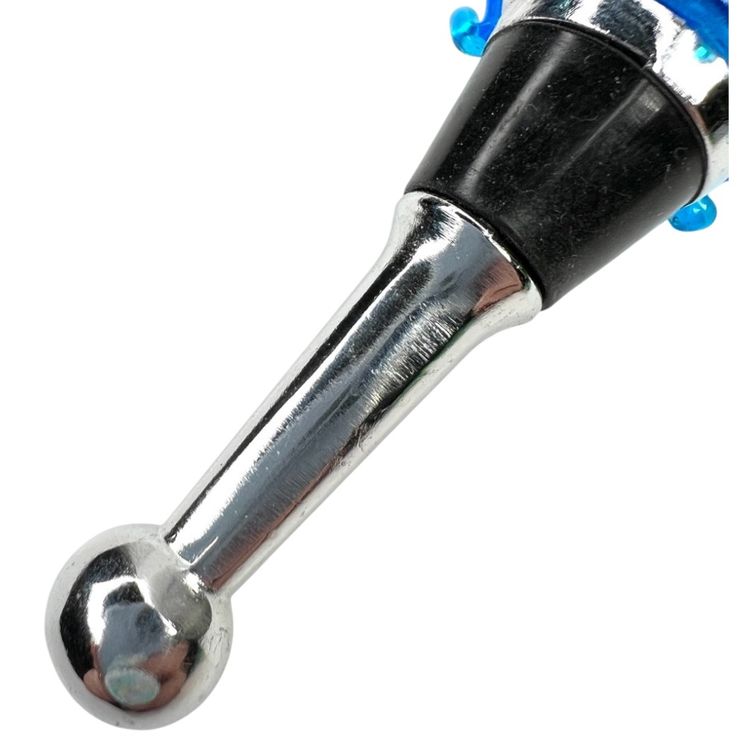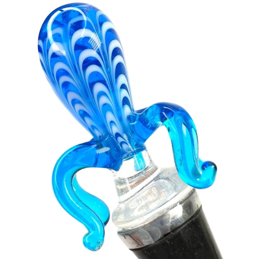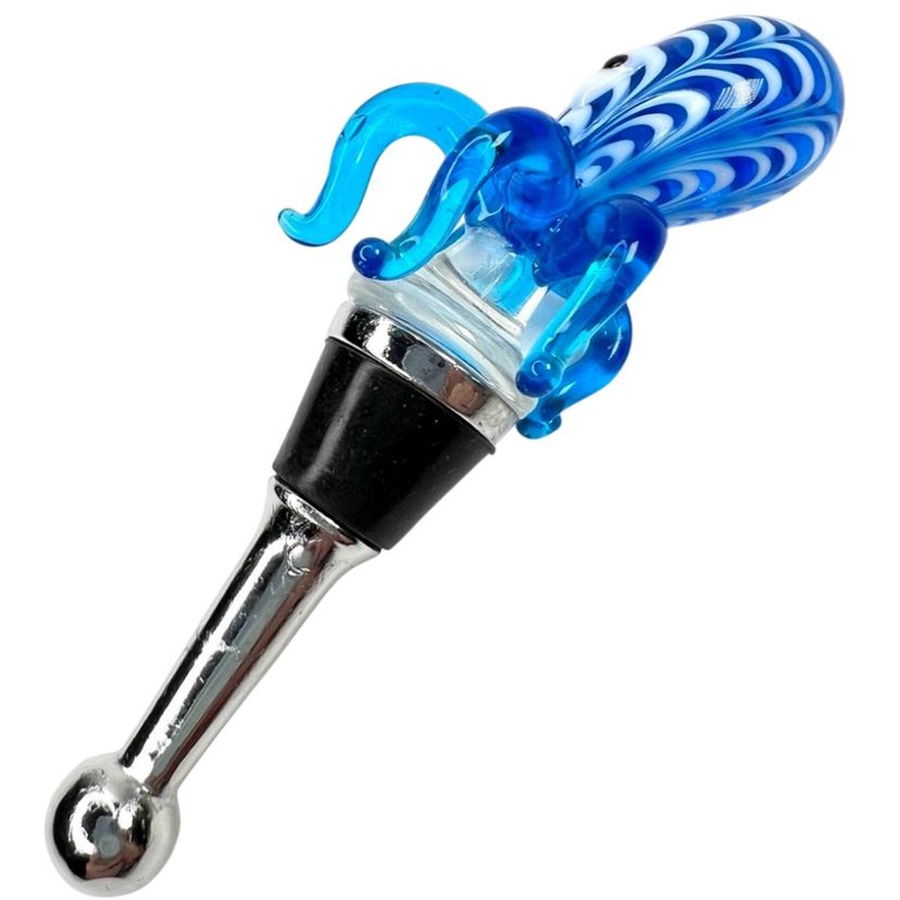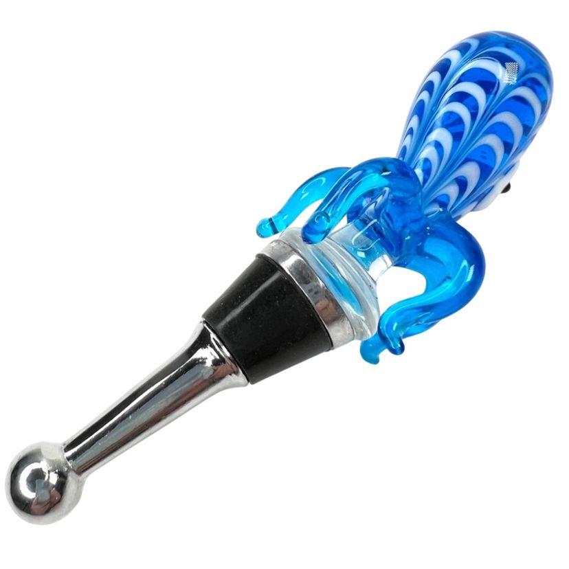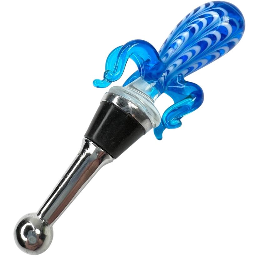 Ocean Blue & White Glass 5-Armed Octopus Squid ๐ ๐ฆ Wine Stopper. No idea why only 5 tentacles! Metal stopper with rubber seal. Looks new / never used, No condition issues. Weighs 2 ounces. 4-1/2โ Length x 1/1/2โ Across