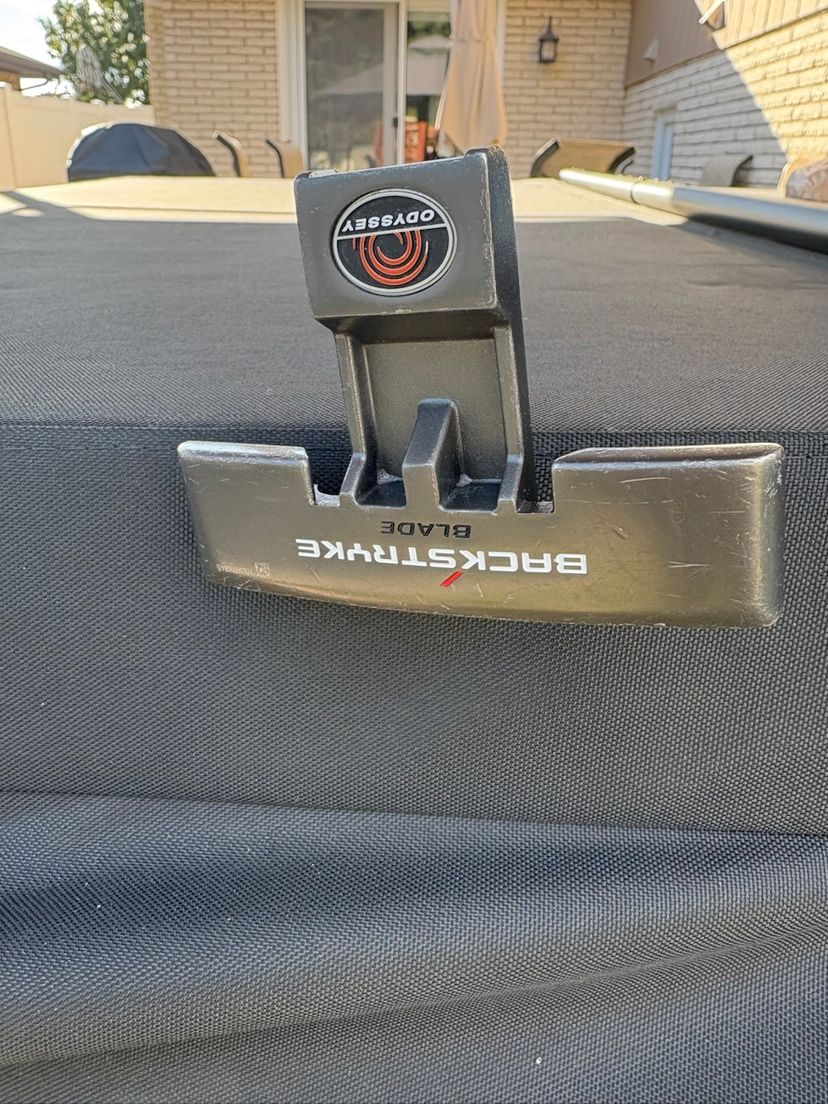 This is an Odyssey Backstryke Blade putter (33.5 inches, right-handed) that’s ready to roll. The face is in excellent shape — clean with a crisp White Ice insert that still provides that signature soft Odyssey feel.