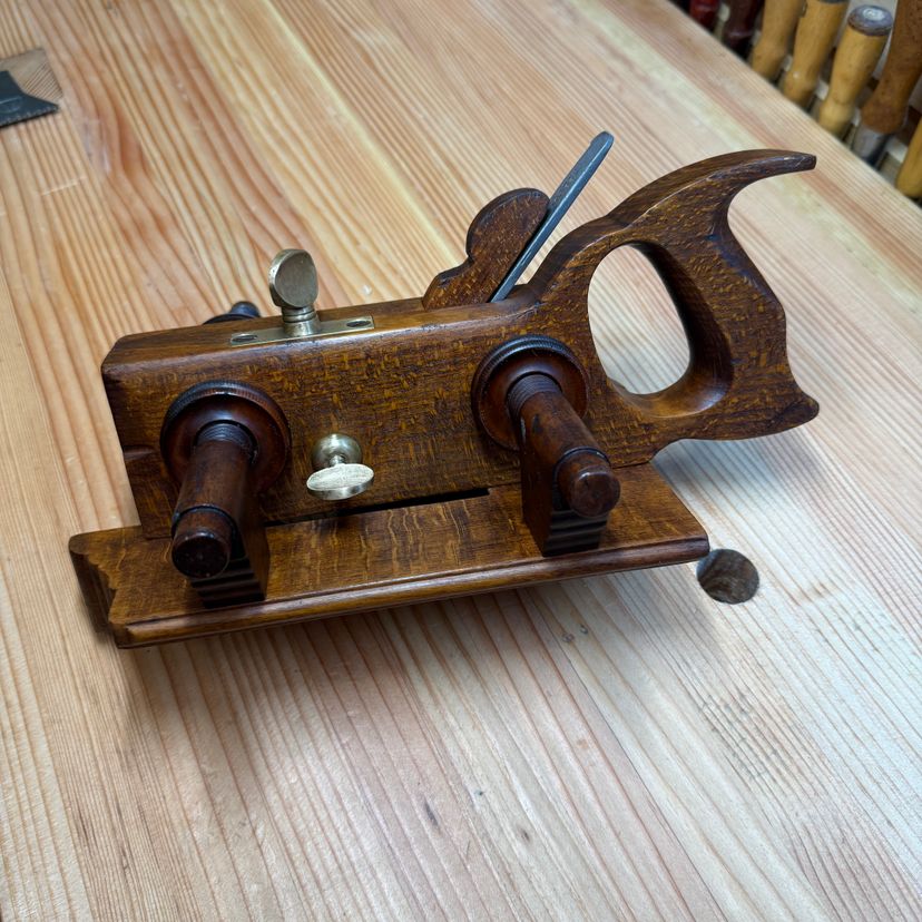 This is a RIGHT HANDED plow. It will be uncomfortable for lefties to use. Ohio Planes were made by Sandusky Tool Co. for the Hibbard, Spencer, Bartlett & Co. hardware store in Chicago between 1890 and 1920. The #4 iron is lightly wider than the typical 1/4 inch. It was sharpened in the past but will need the back re-flattened. Photos show the overall condition and defects on the plane.