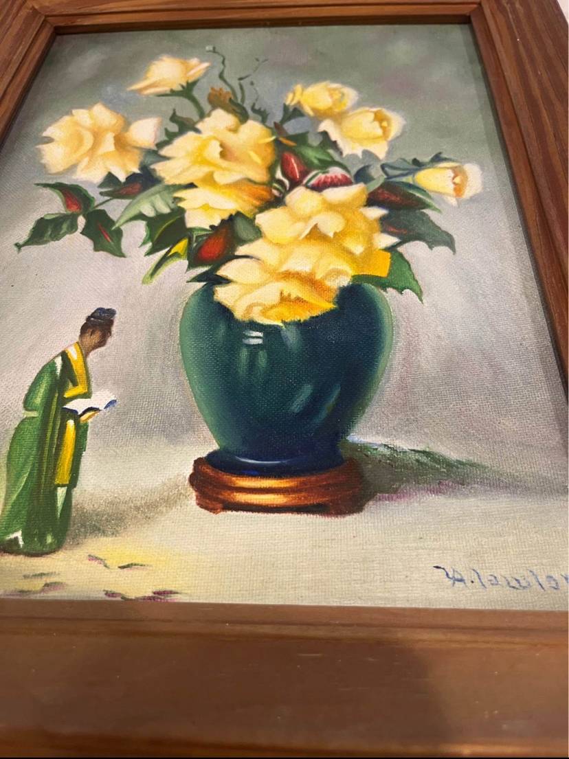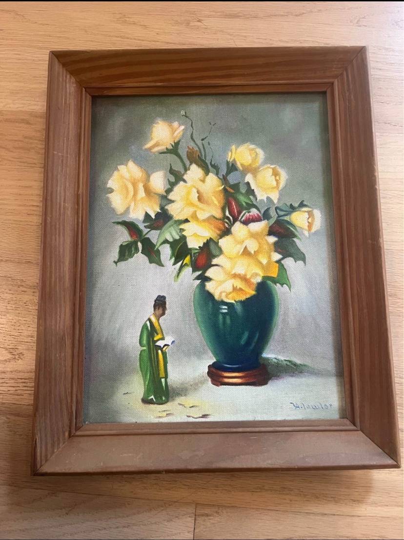Vintage oil still life painting on canvas. Good condition with mild wear consistent with age. Painted by Andy Lawlor at Cape Cod in the early 70’s