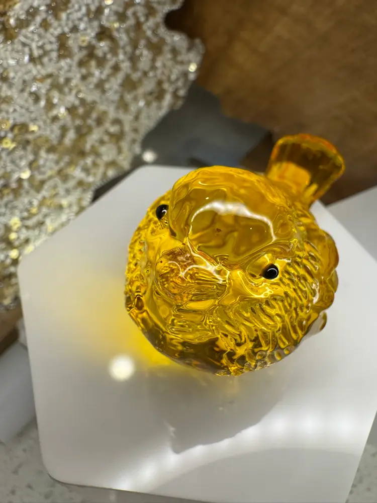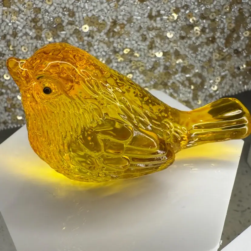One Mini Amber Crystal Bird Figurine - 3'' inches
