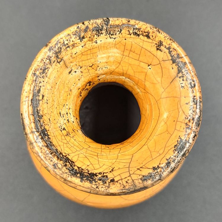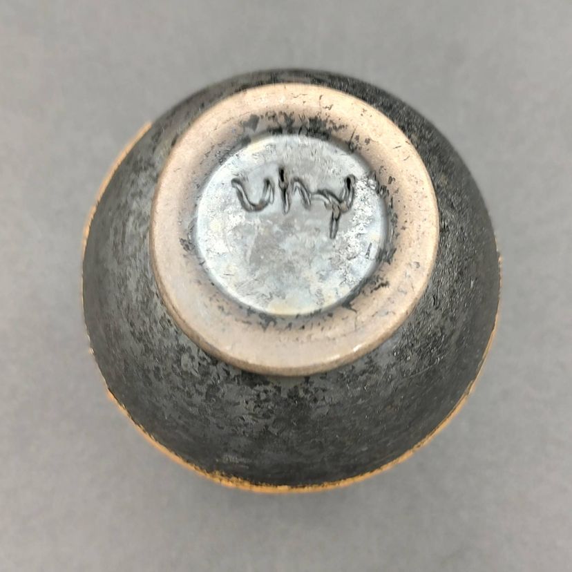 Orange And Black Art Pottery Vase. Signed By Artist. Height 3.5" x Rim 2.5" x base 1.5".