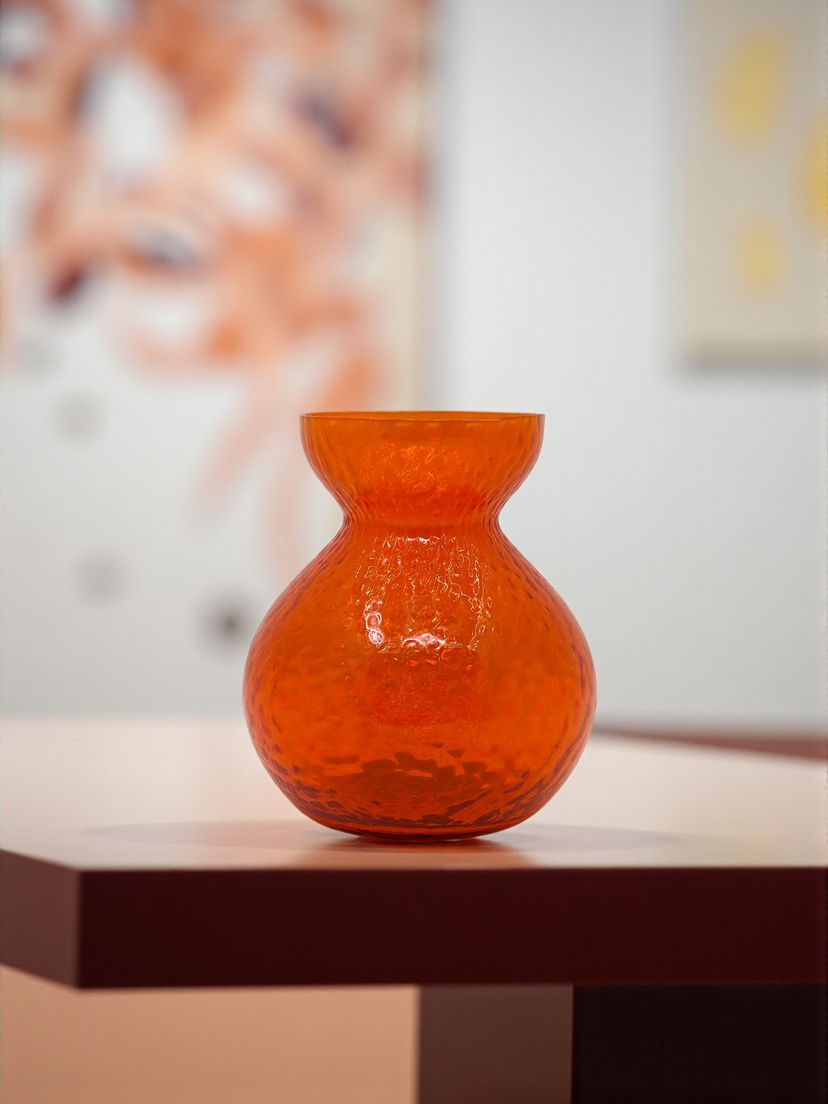 Add a vibrant glow to your home—this sculptural orange vase brings mid-century color and timeless Scandinavian charm.