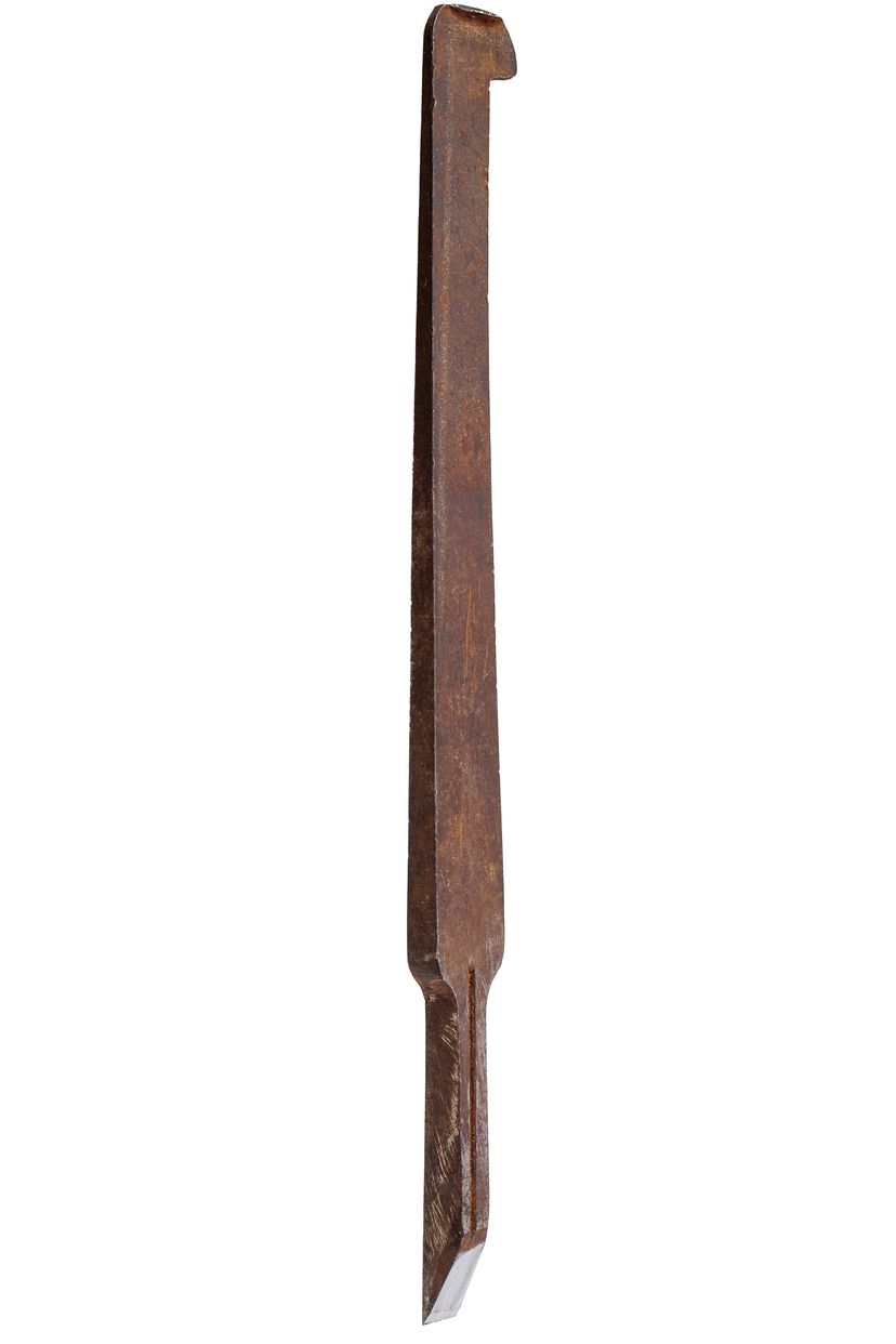 A solid original Ohio Tool Co. Thick Tapered Plow Plane Iron. It is 5/16" wide. It has a new primary and secondary bevel, and the face has been prepped enough to gage the condition. It will just need honed on both sides. It has "Ohio Tool Co." stamped in an arch at the top.