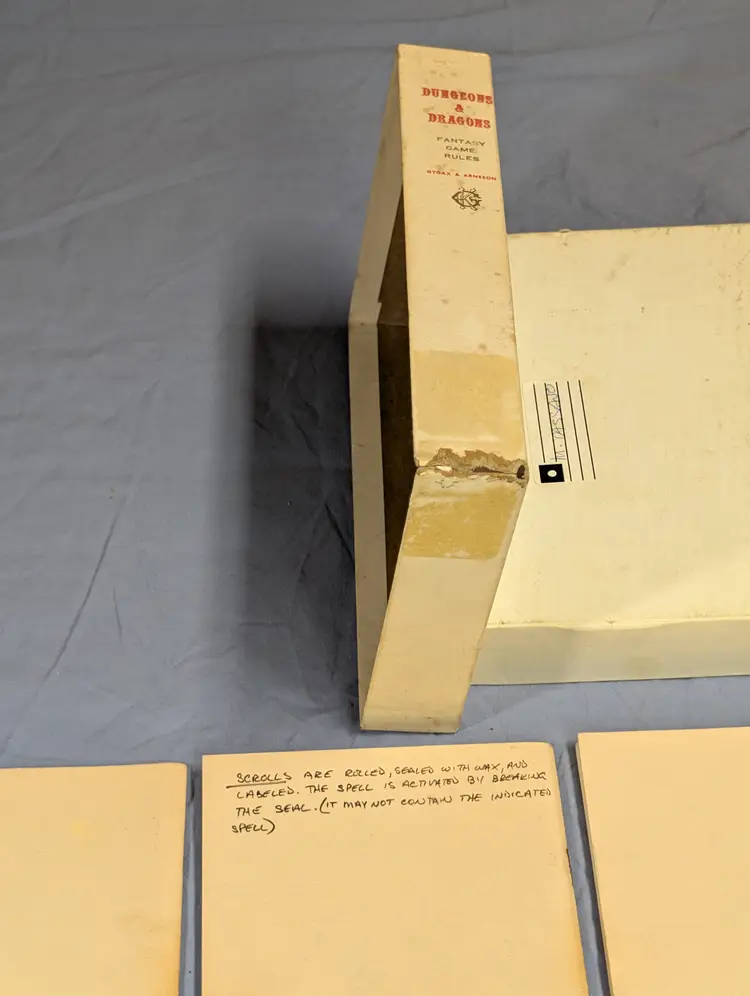 This is a museum-quality piece of gaming history: an Original Dungeons & Dragons (OD&D) 3-Volume Set from the very early years of the game. Often called the "White Box" D&D, this set contains the foundational rules by Gary Gygax and Dave Arneson.
