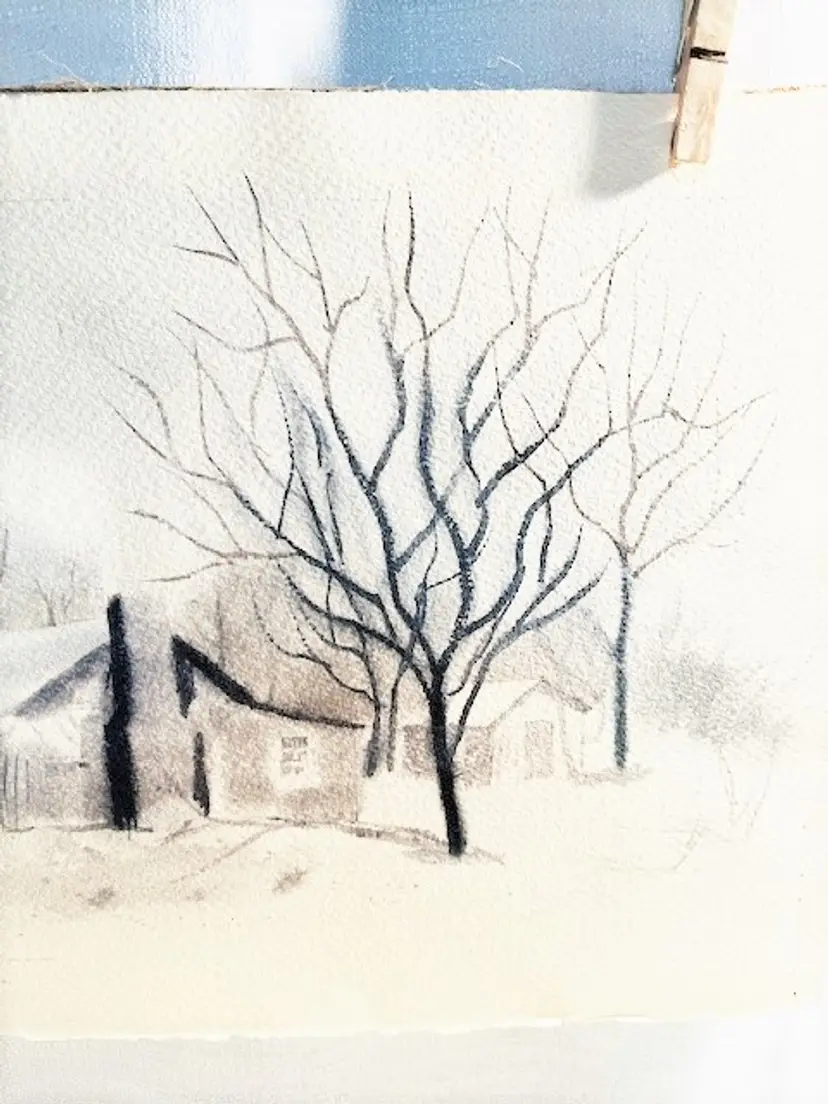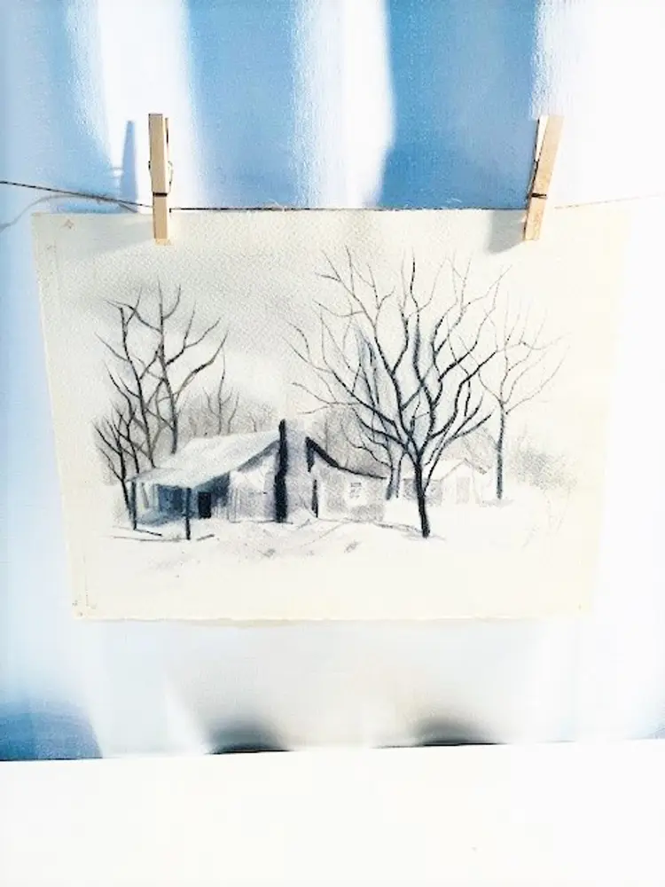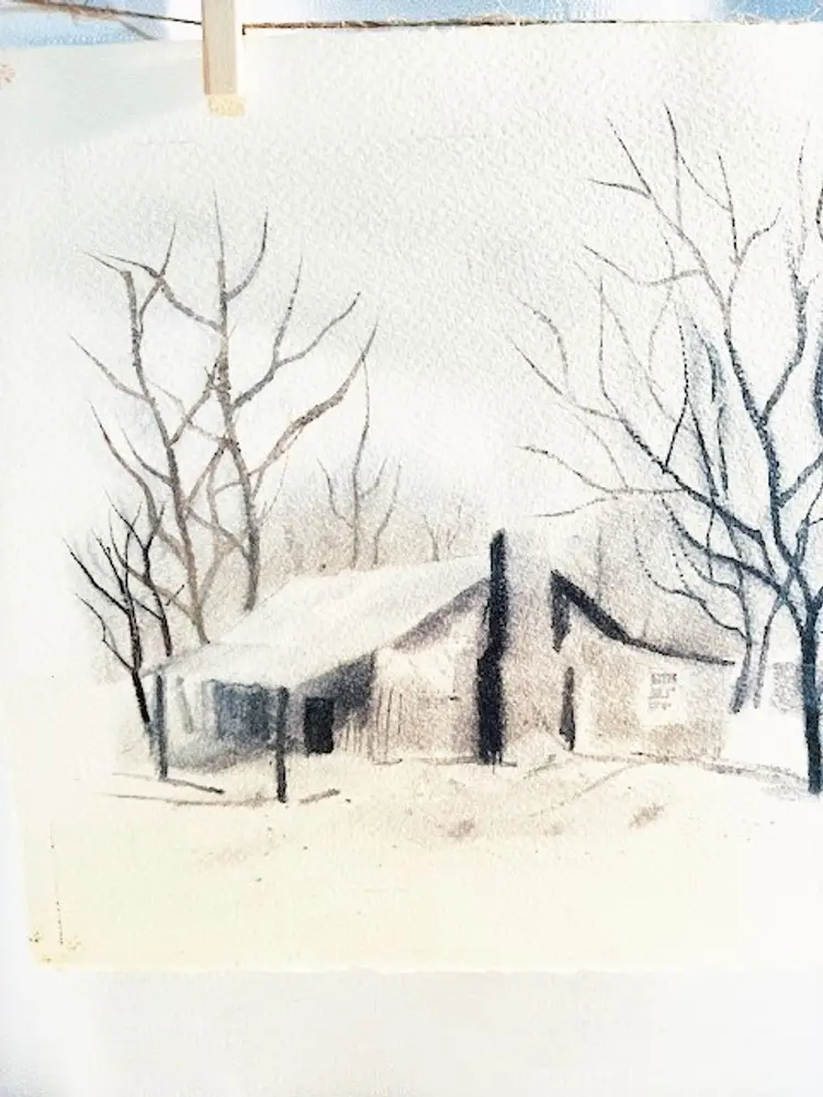 Amazing Original Hand Painted Charcoal Farmhouse Scene! Excellent Pre-owned Condition! Zero chips or cracks. There is some yellowing to the paper due to age. See photos Measures approximately: 11" tall x 15" wide.