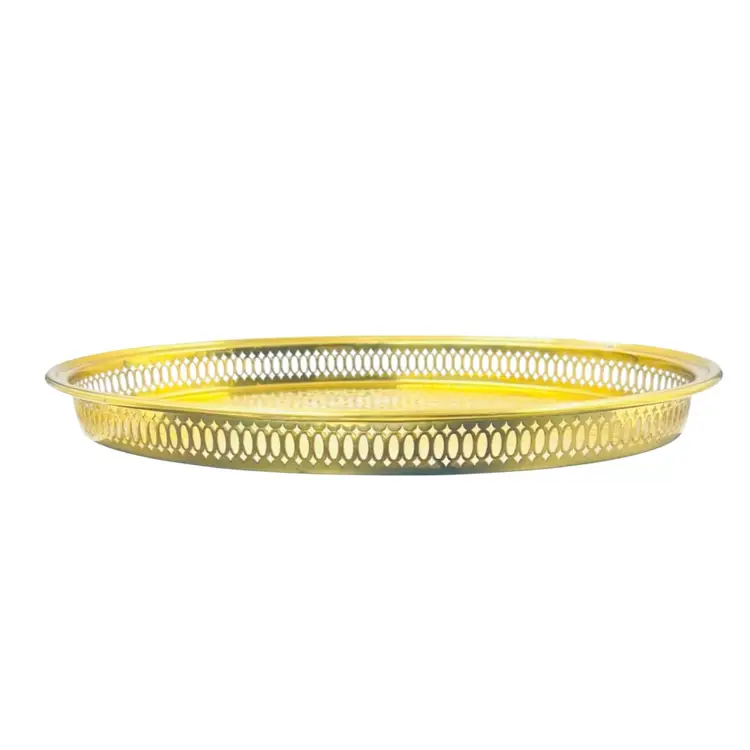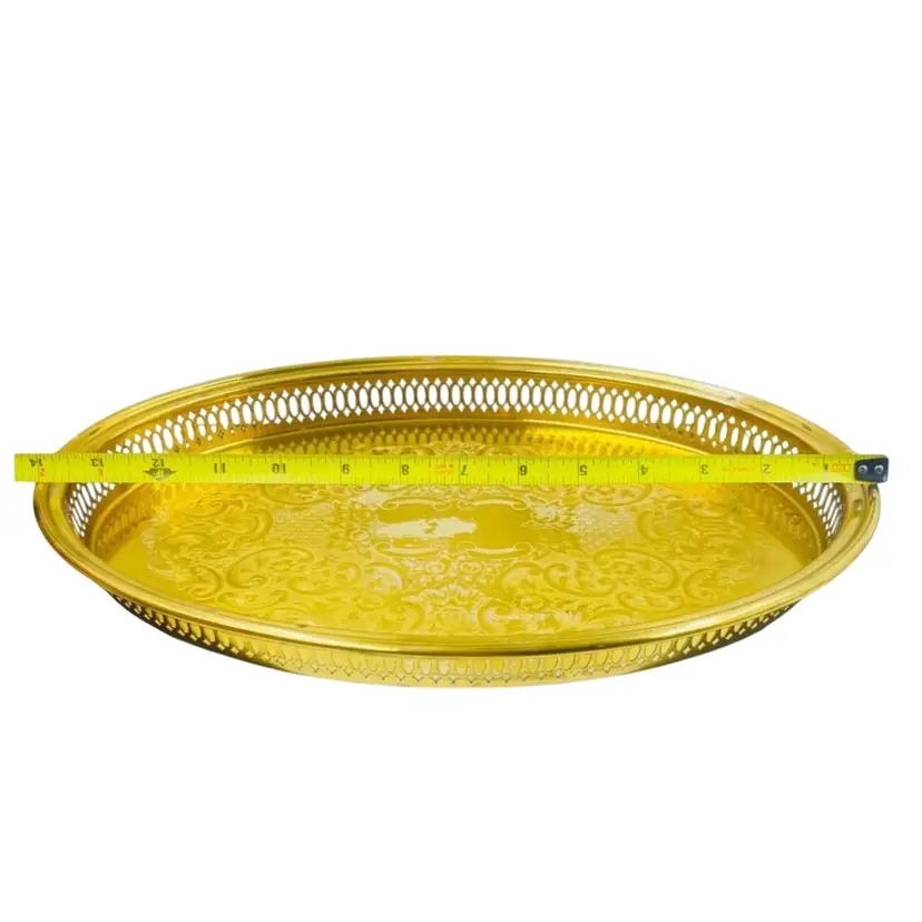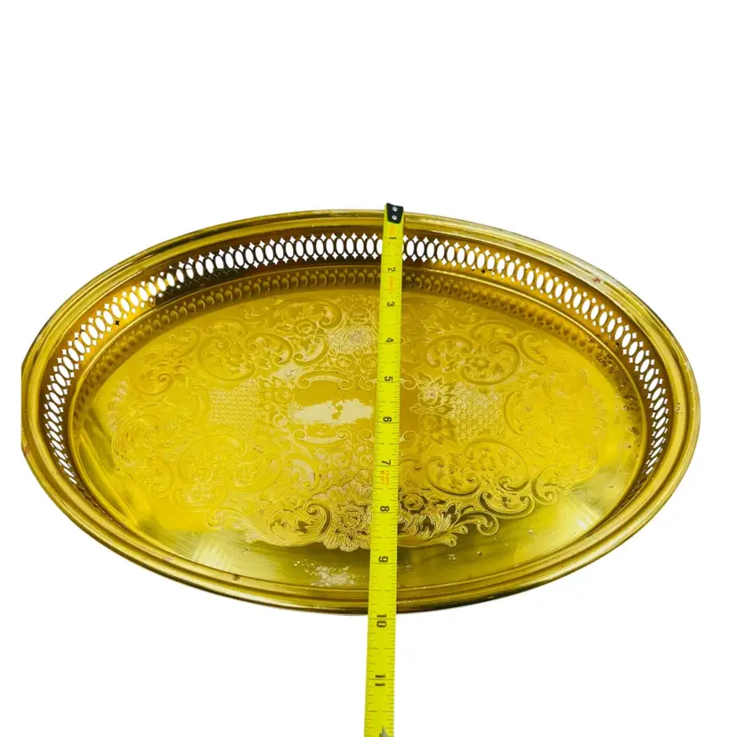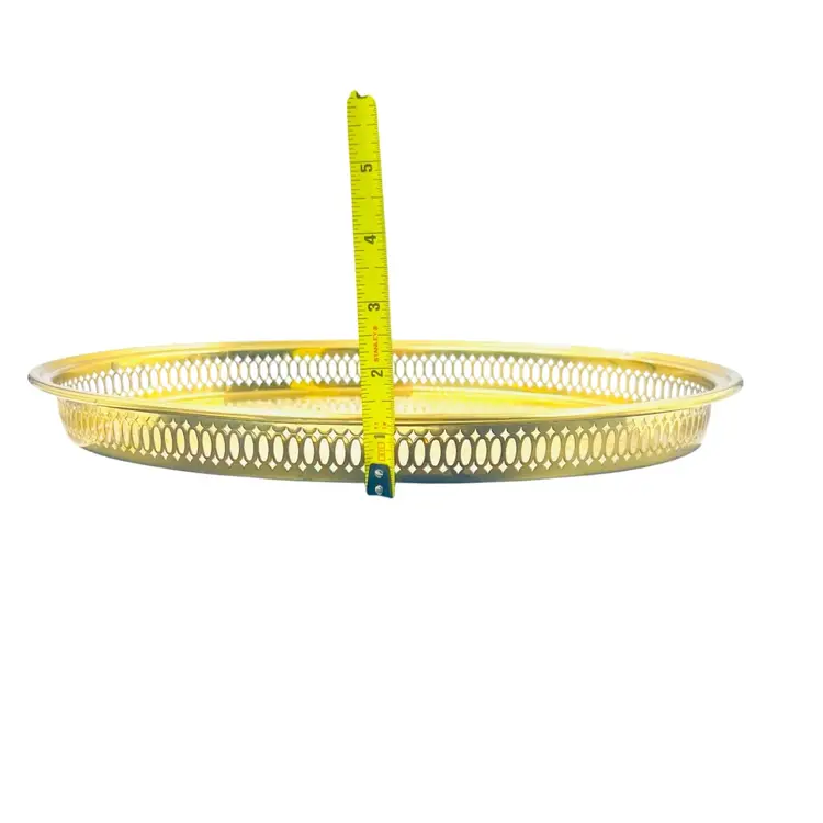 OVAL SERVING TRAY SOLID BRASS Reticulated Scroll Pattern Dresser Tray Holiday Hosting