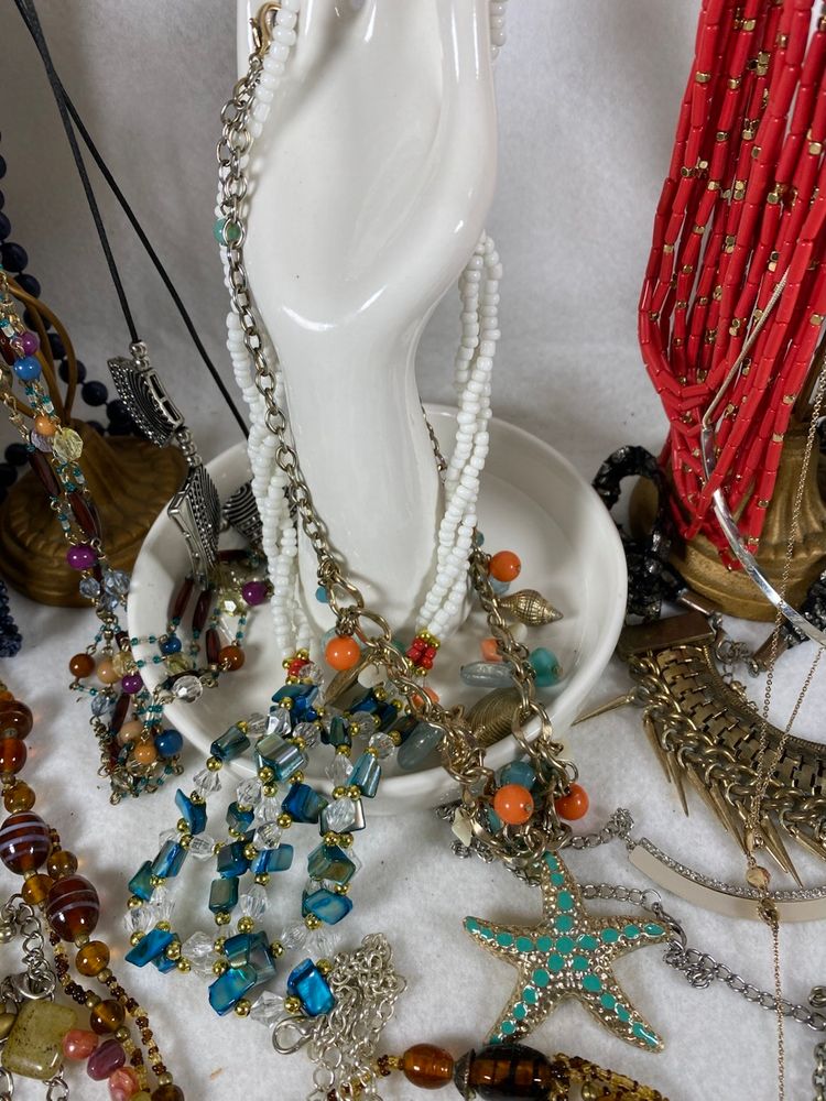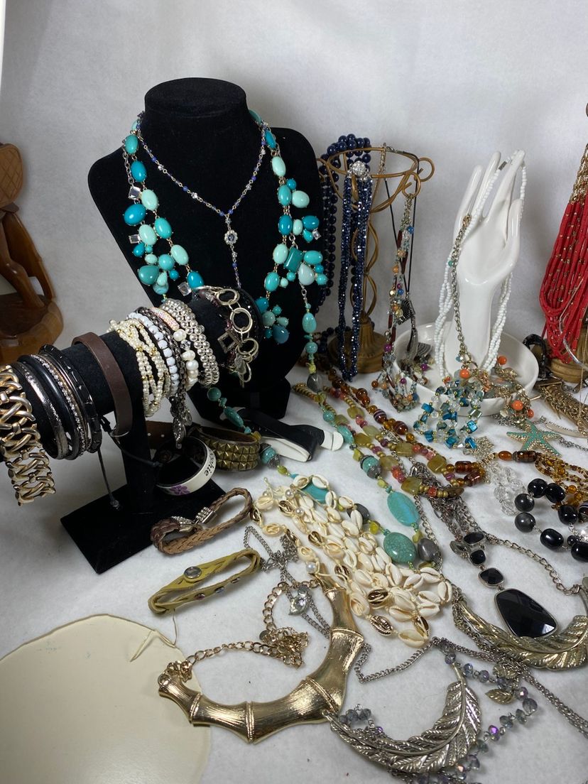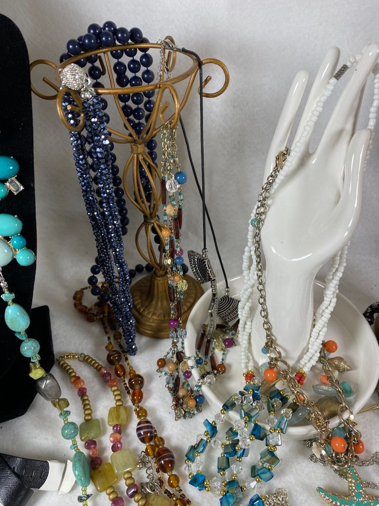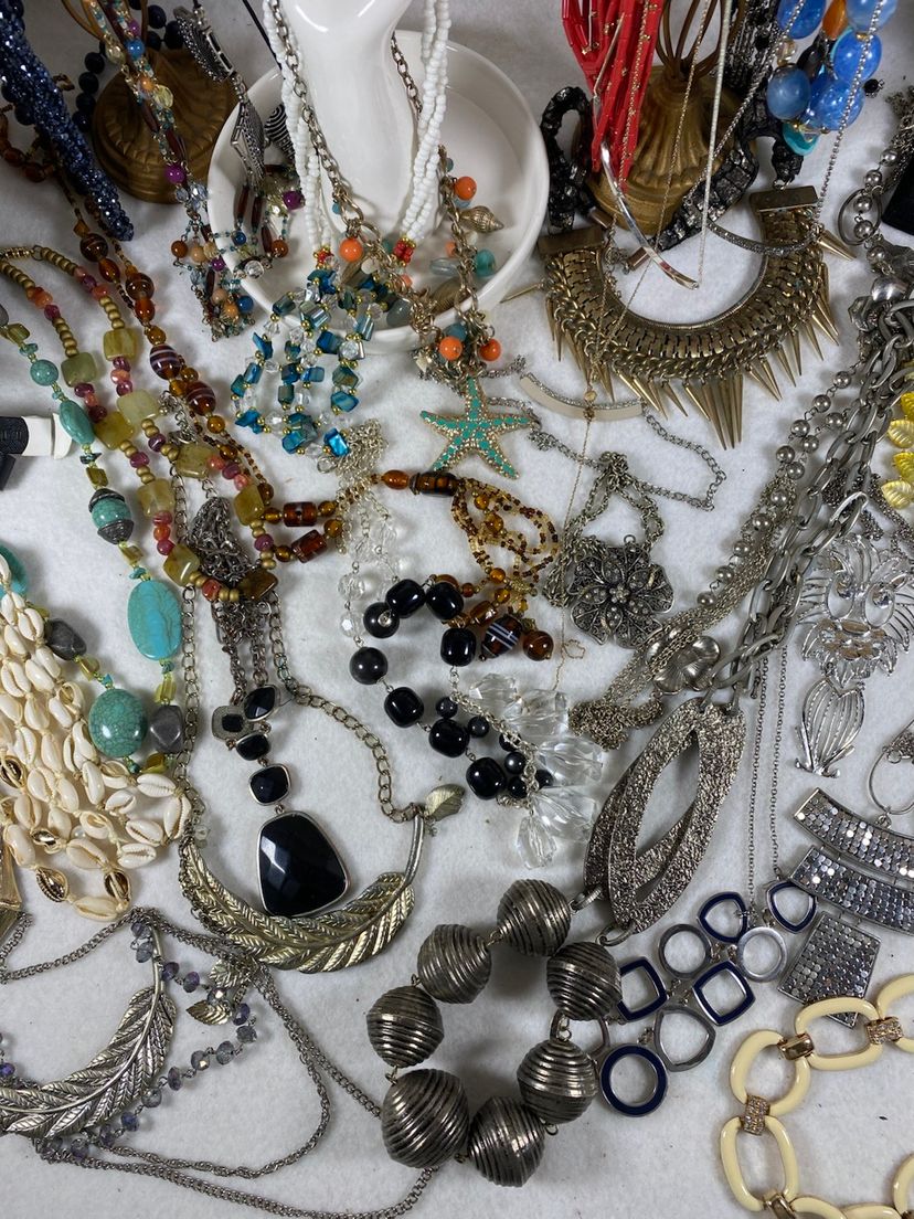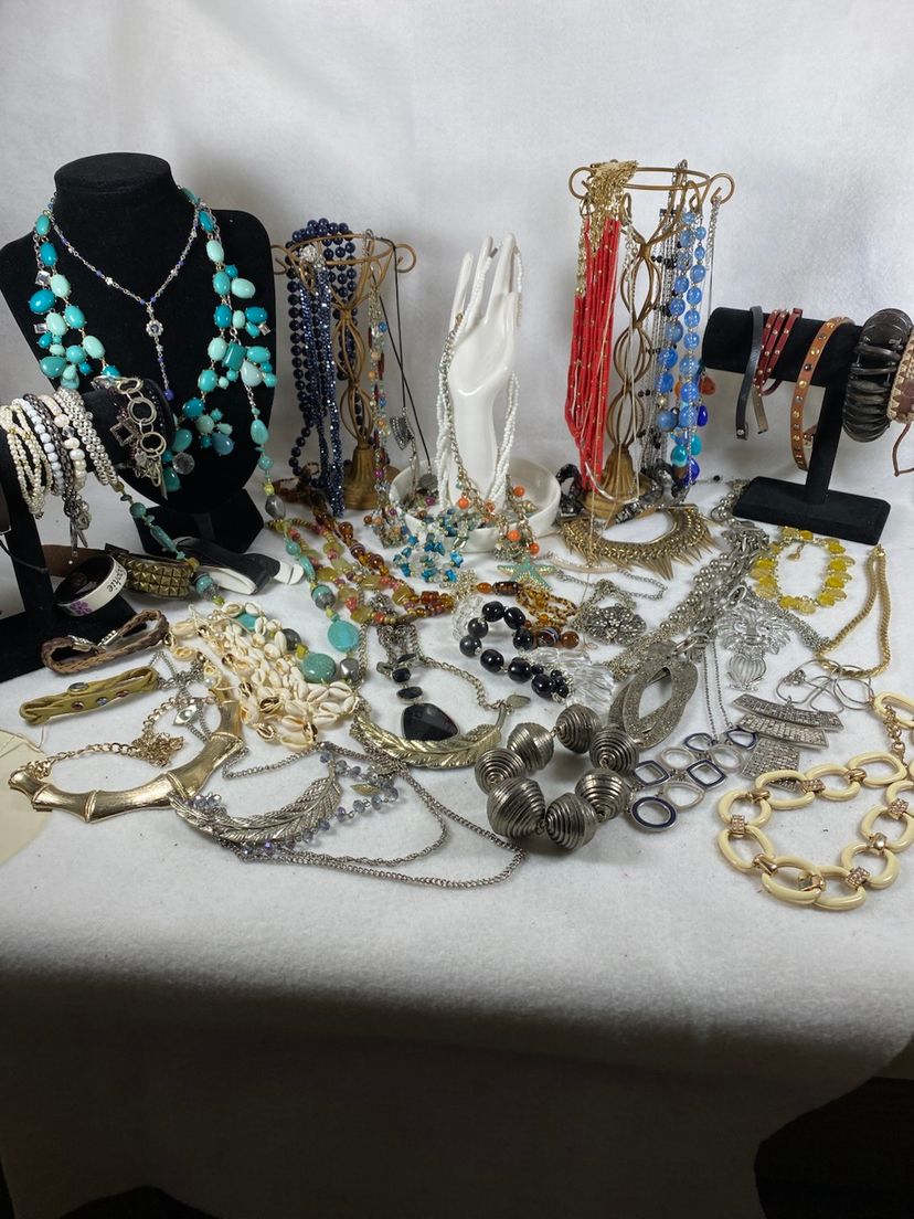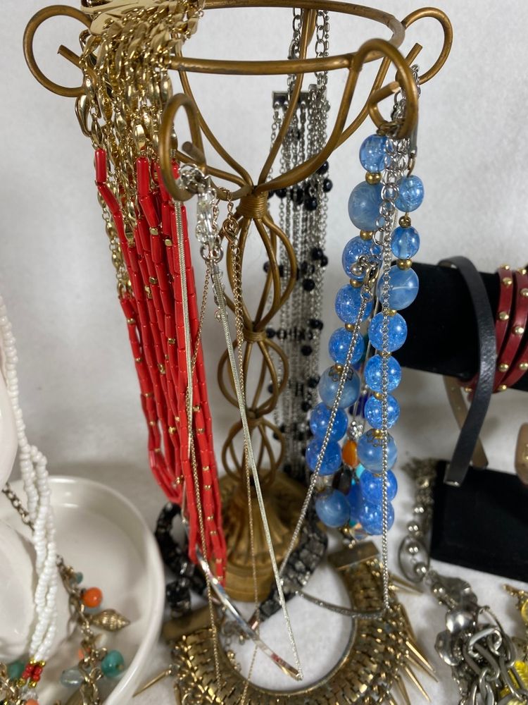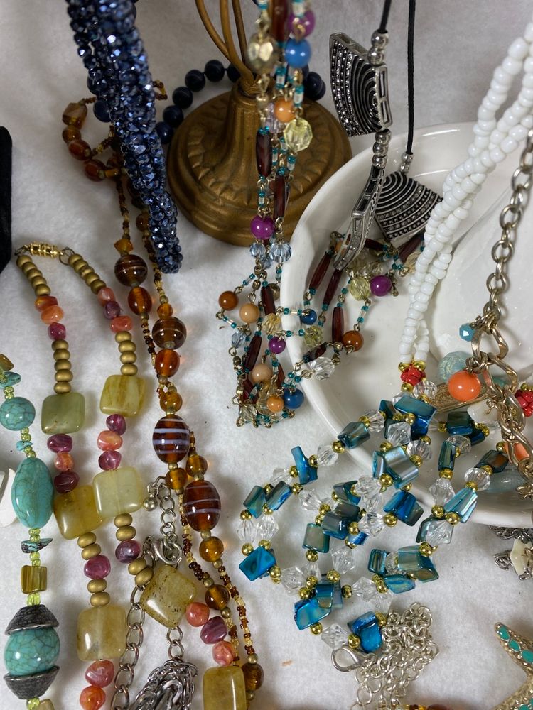 Over 60 Pieces Of Jewelry Lots Of Necklaces And Leather Bracelets