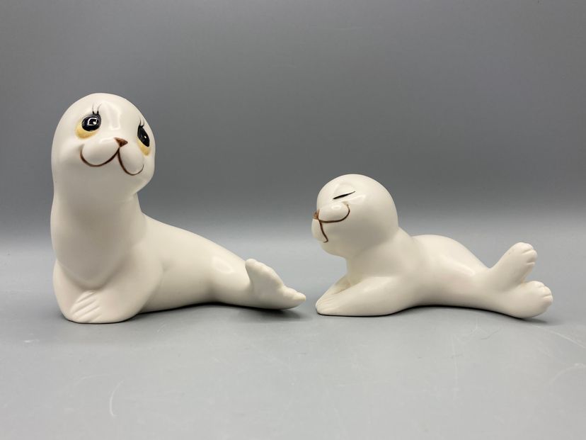 They each measure approximately... Mom - 4 1/4" x 3 3/4" Baby - 3 3/4" x 2 1/2"