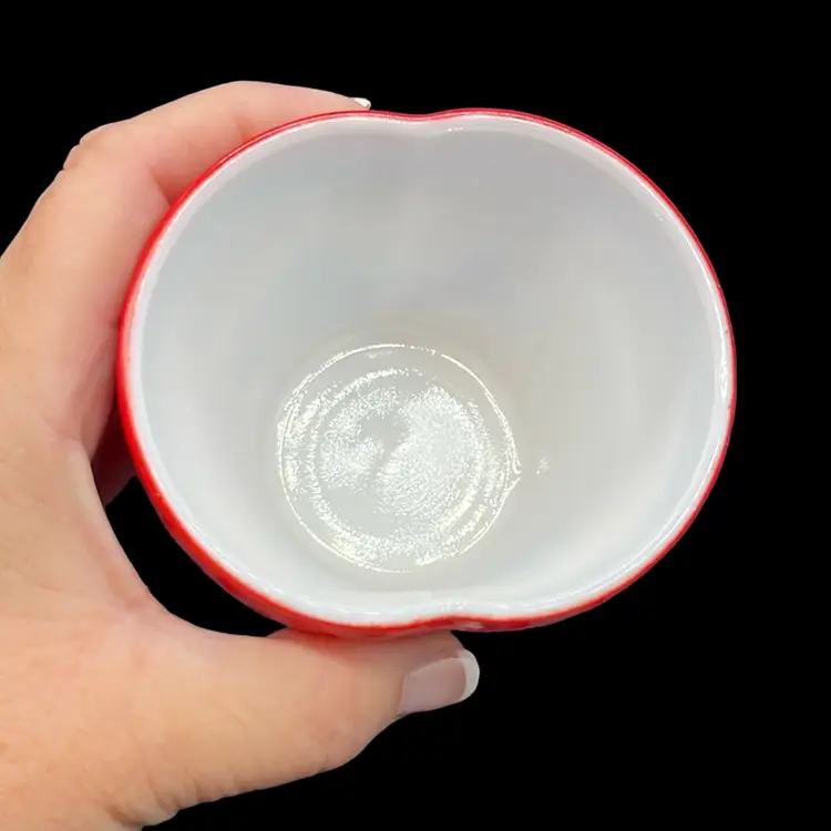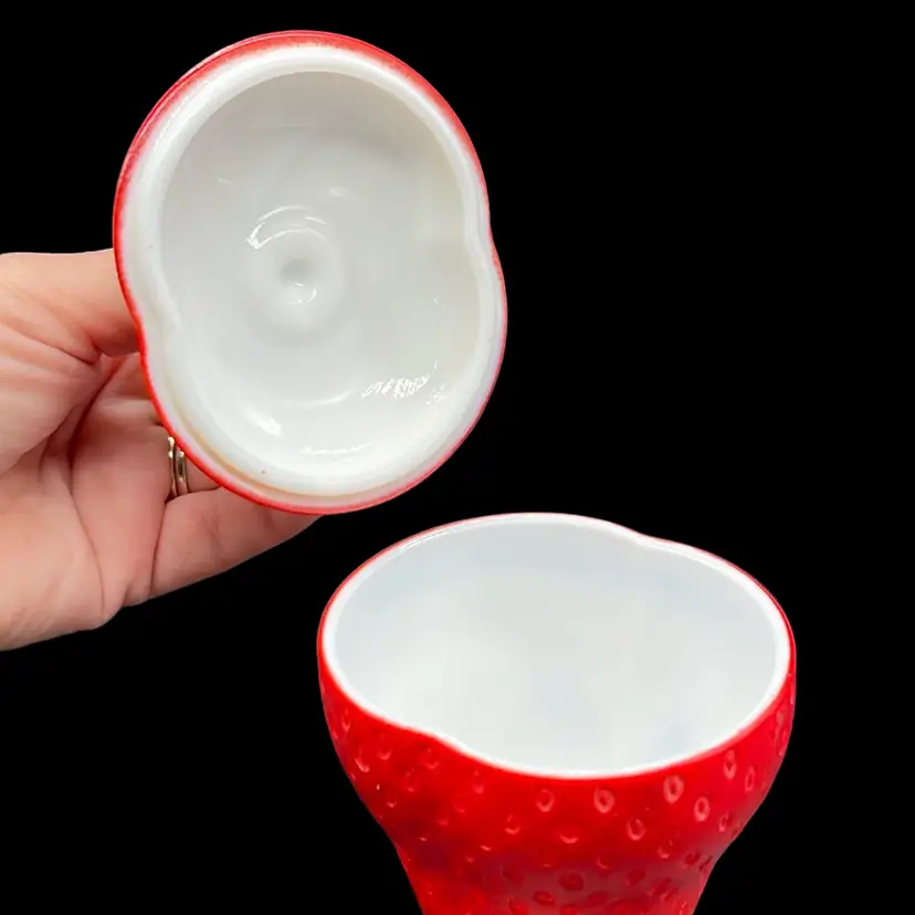 Jam Jelly Jar in good condition, one concern (see pic) small paint loss on top and hairline crack. Approx. 4”h x 3.25” w