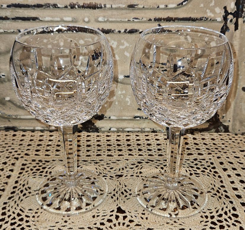 This beautiful pair of Waterford wine goblets is in excellent, like-new condition, with no appreciable chips, scratches or cracks. Measurements are depicted in the pictures of the item or listed in the description of the item. Please review the photos, as they are part of the item description. Please note that any props used in the photos are not included in the purchase, unless otherwise indicated.
