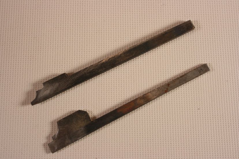 9 1/2" x 3", No maker markings and I believe they are used made.