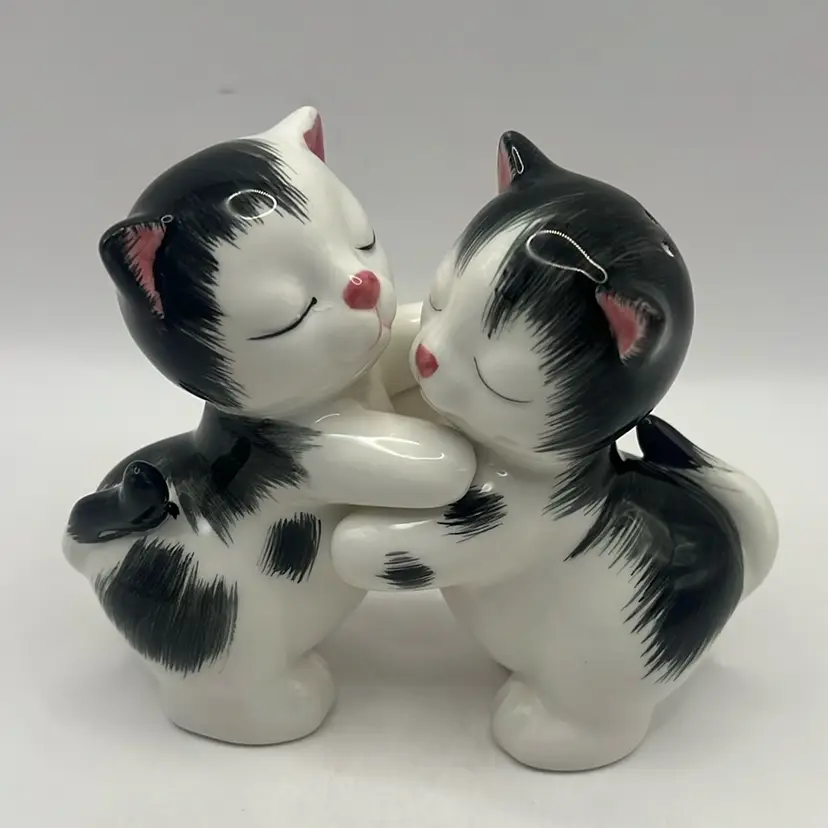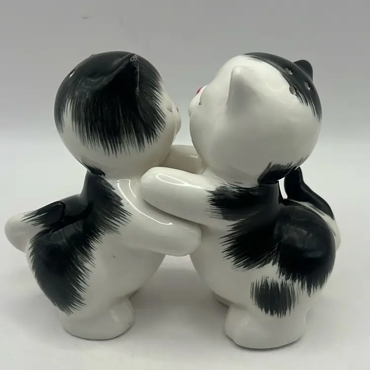 Pair Of Vintage Black And White Ceramic Salt And Pepper Shakers, 4” Tall