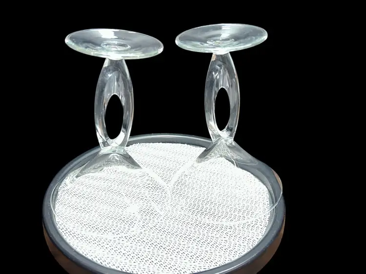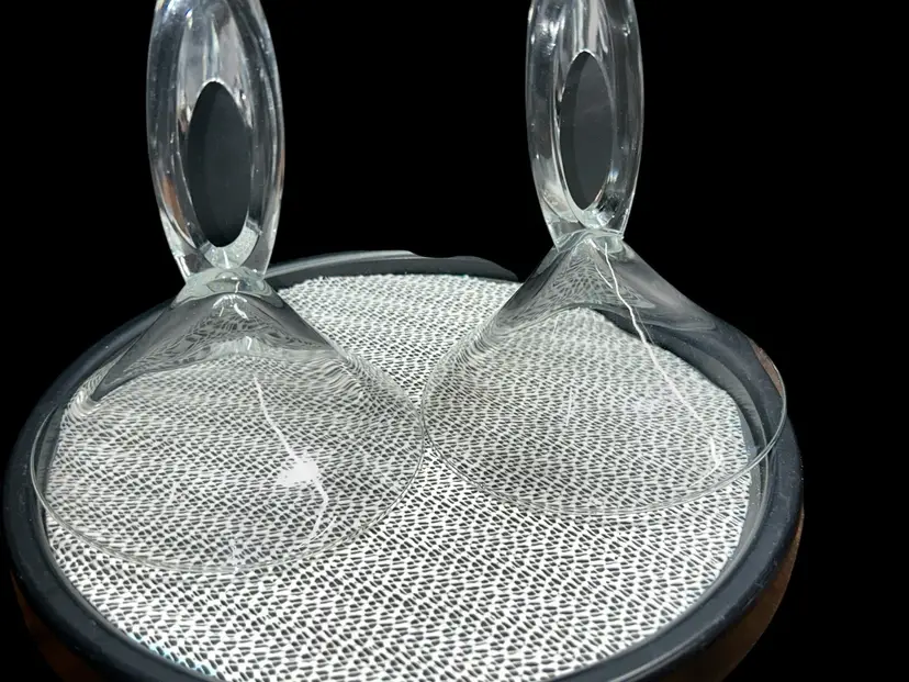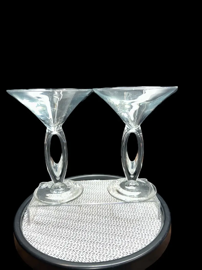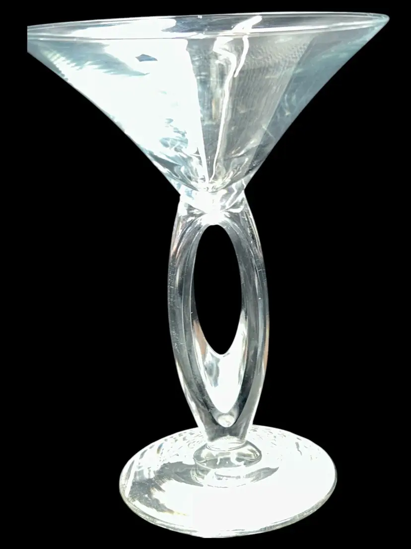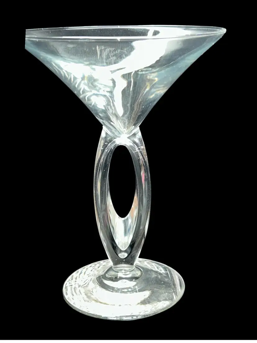 Open loop in stem. 6.5” tall, 4.75” diameter across opening, 3” diameter base. Excellent condition. MCM look.