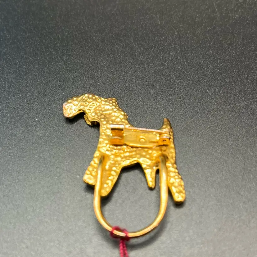 Pair Of Wire Haired Fox Terrier Brooch, Gold Tone