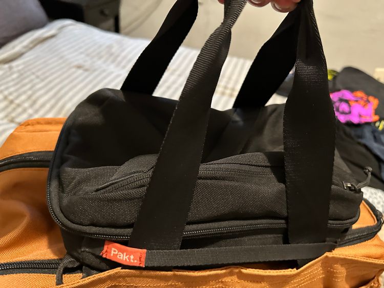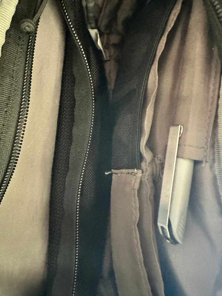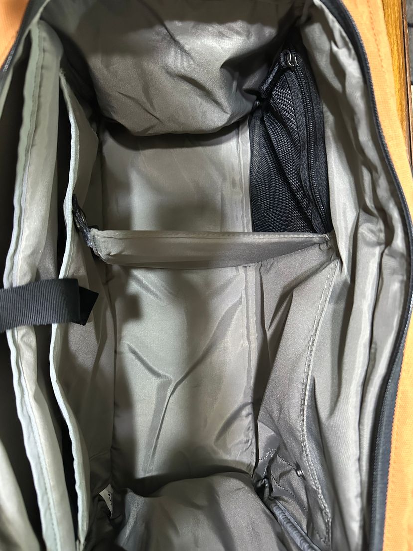 5L sling was used more often than the duffel, maybe a few scuffs but still in great condition and darker than appears in this lighting in photos. The fabric is nice and malleable, I preferred this to the stiffer fabric of the Everyday sling. 900D rPET (recycled polyethylene terephthalate) exterior with durable water resistant coating.