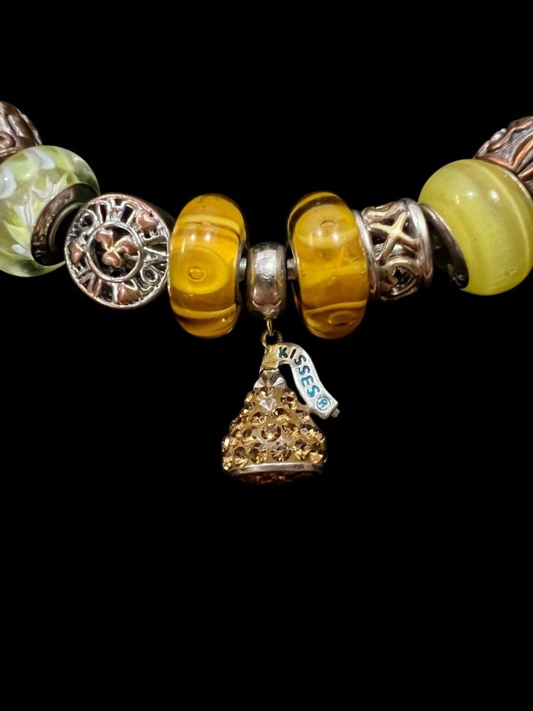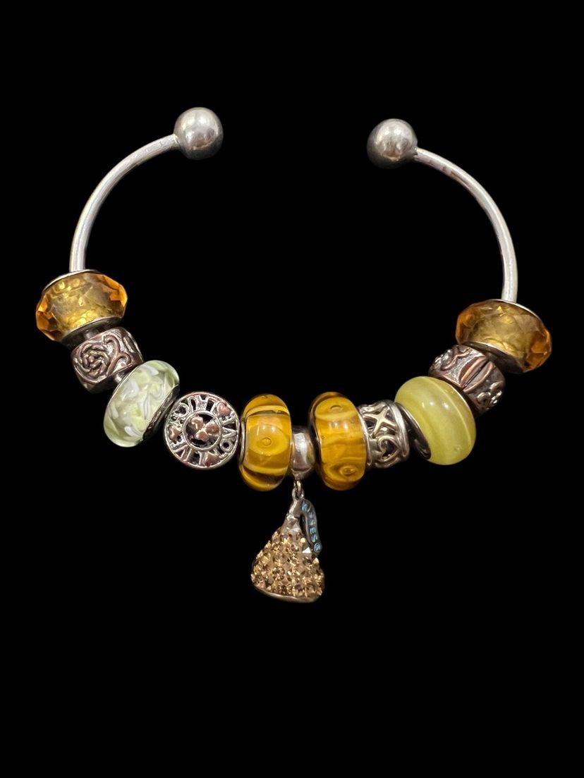 Pandora Style IBB 925 Sterling Silver Open Cuff Hershey Kiss Glass Charms #ofc-3
