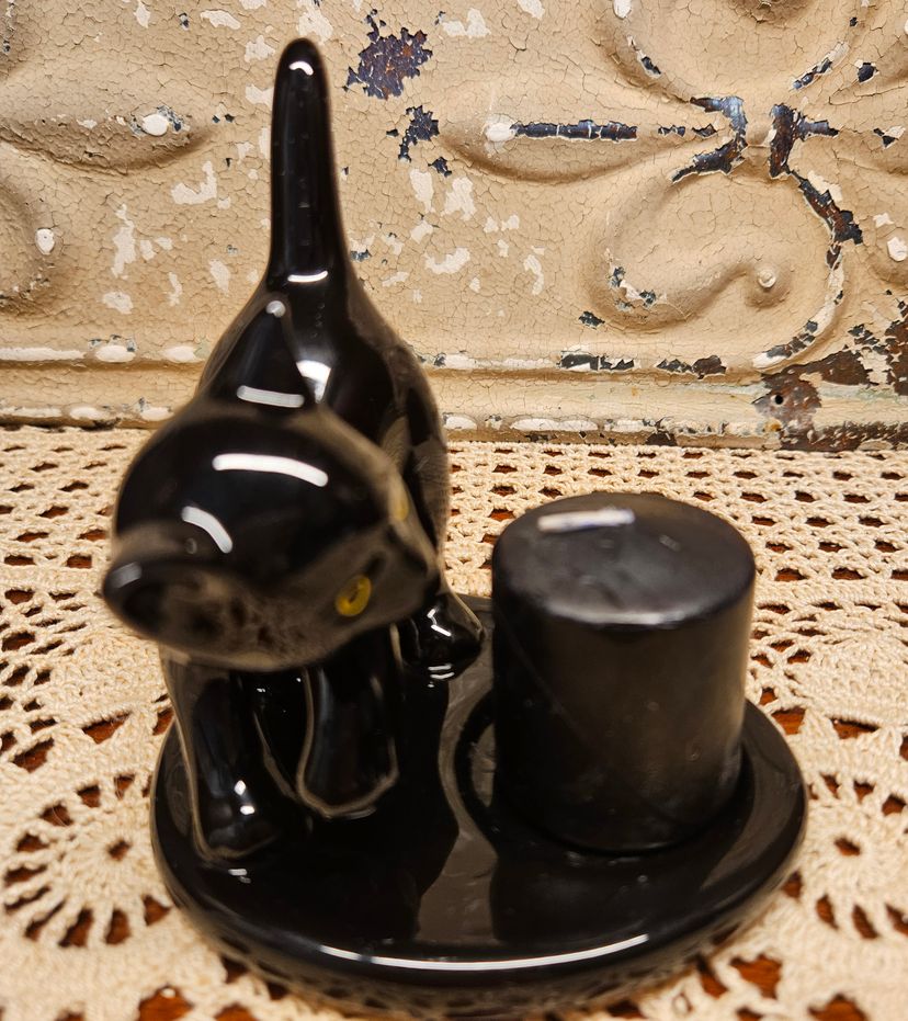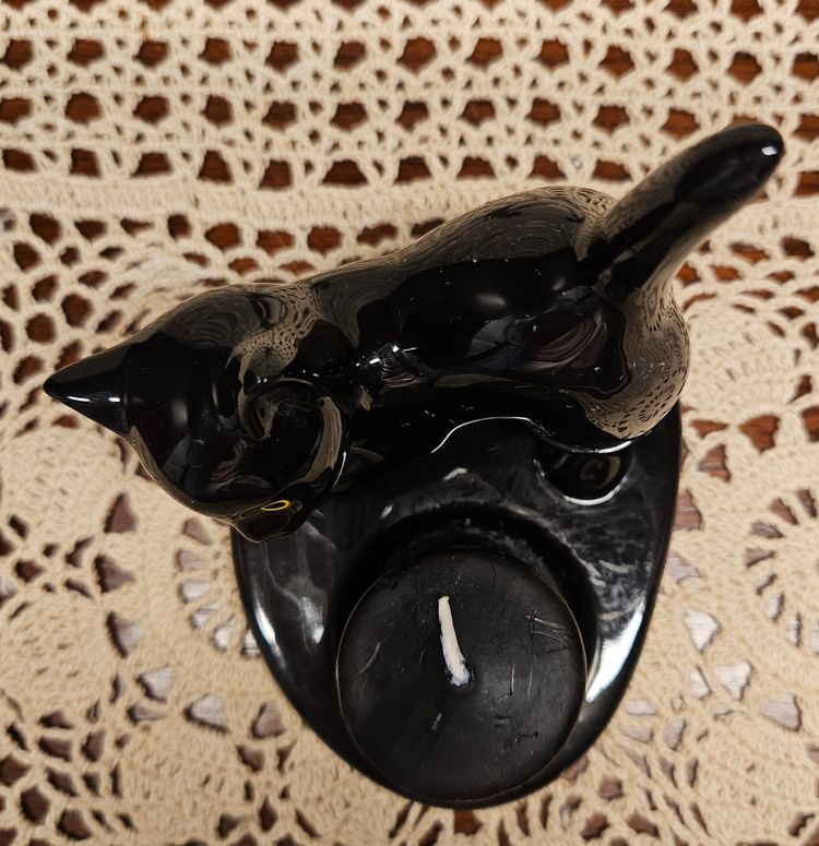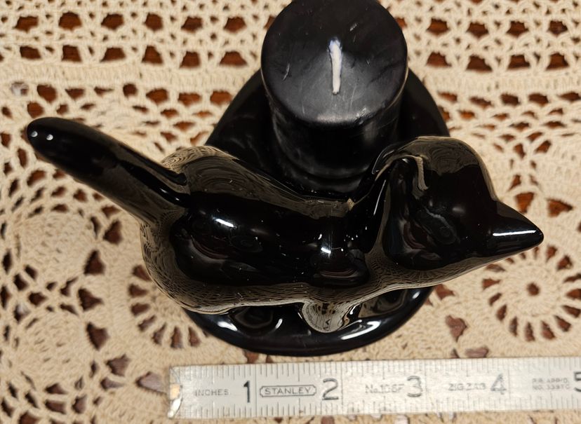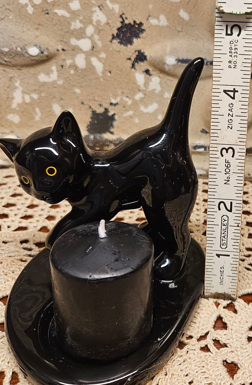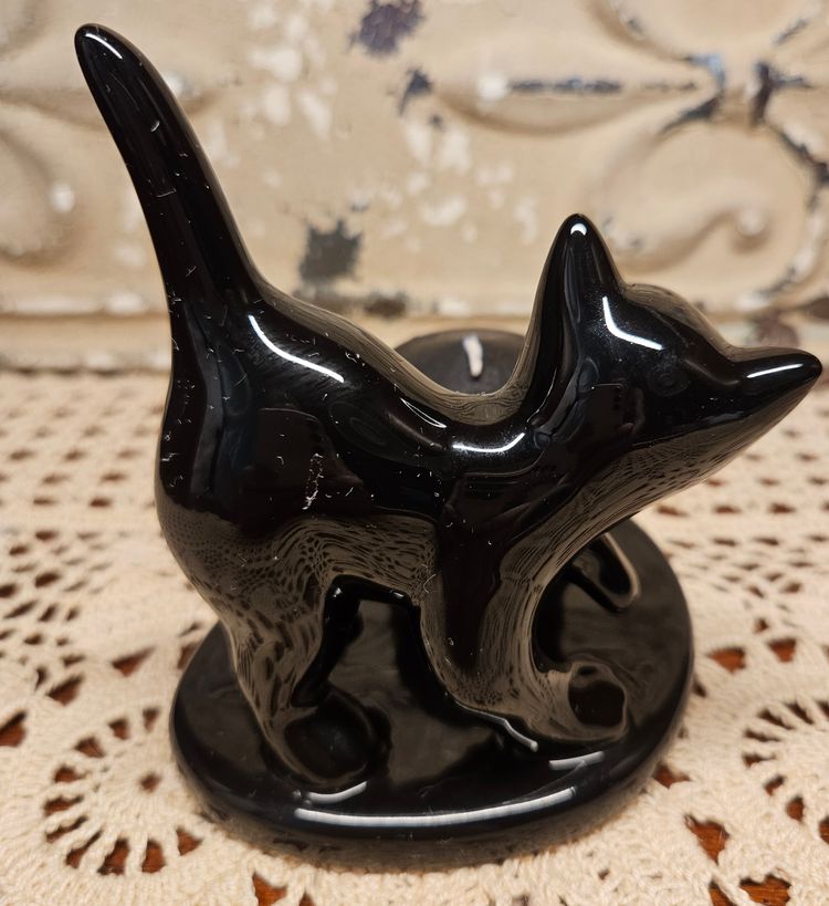 This festive PartyLite candle holder, featuring a black cat, is in excellent, used condition, with no appreciable chips, scratches or cracks. Measurements are depicted in the pictures of the item or listed in the description of the item. Please review the photos, as they are part of the item description. Photos will always reveal noticeable defects, as will my description. Any white “blemishes” that are not pointed out in this section are from the lighting that I use for my photos. If you need clarification, please reach out to me.