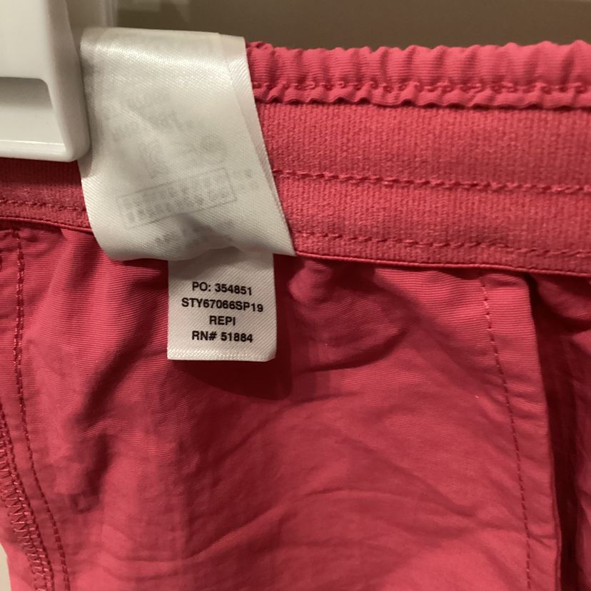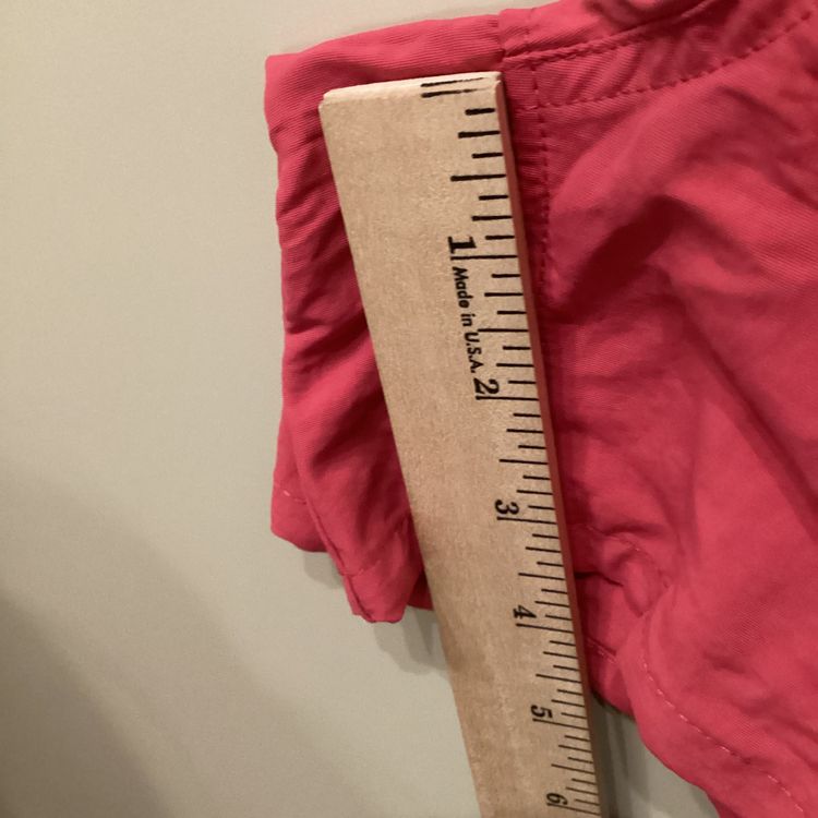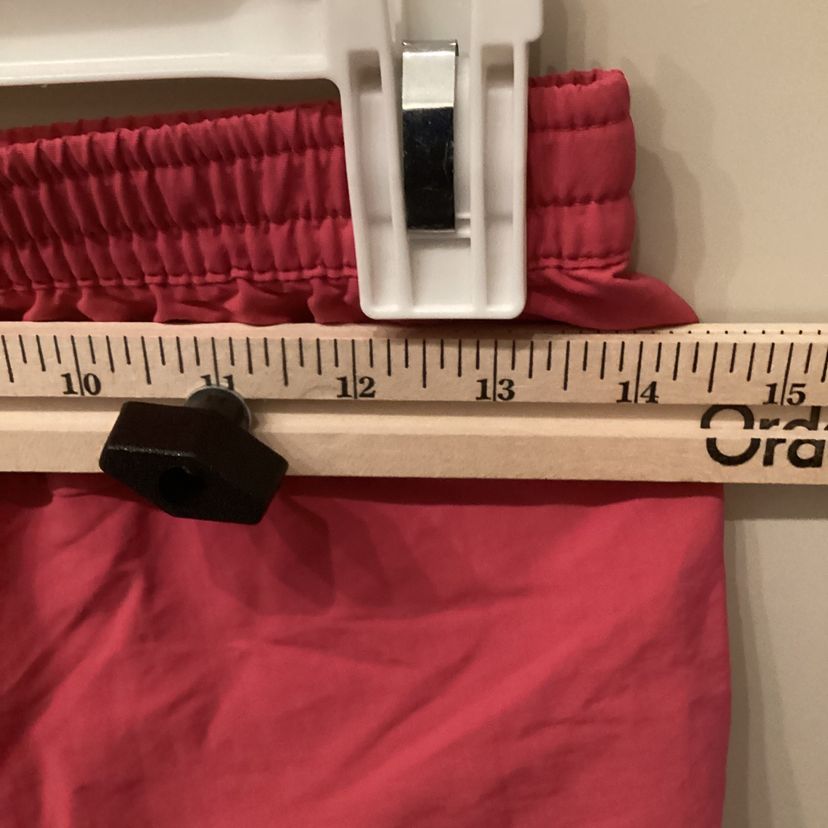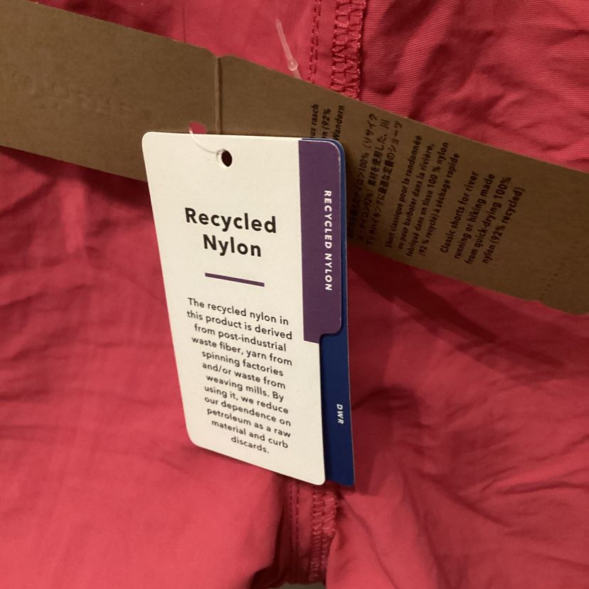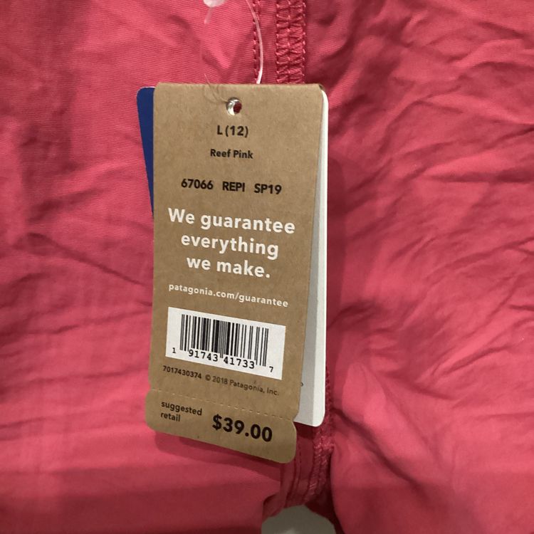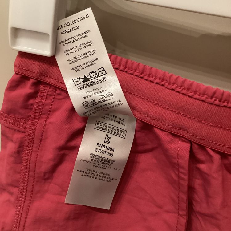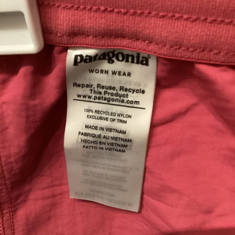 The product is a pair of girls' large size 12 pink coral Baggies shorts from Patagonia with a 4" inseam. These unlined shorts feature a solid pattern, drawstring closure, and are made of nylon material. Perfect for travel, activewear, or casual occasions, these shorts are ideal for outdoor activities like beach trips, water sports, soccer, CrossFit, hiking, and running or jogging. With a regular fit and flat front design, these Baggies shorts combine style and functionality for young girls on the go.