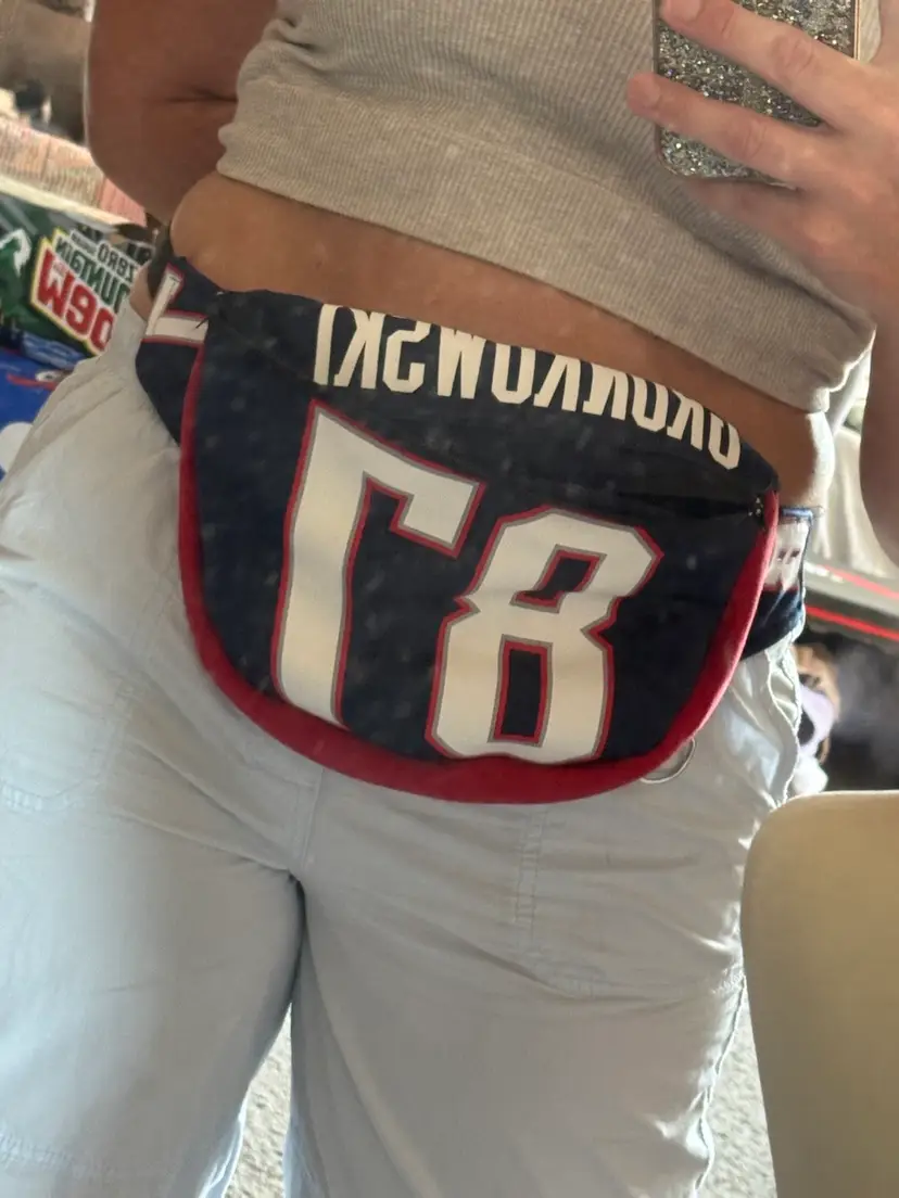 Show off your team spirit with this New England Patriots belt bag featuring Gronkowski-inspired style! Perfect for game day, tailgates, or everyday wear, this adult-sized waist pack keeps your essentials close while repping your favorite football team. Designed with fans in mind, it’s lightweight, hands-free, and built for comfort—whether you’re cheering in the stadium, hitting a concert, or running errands.