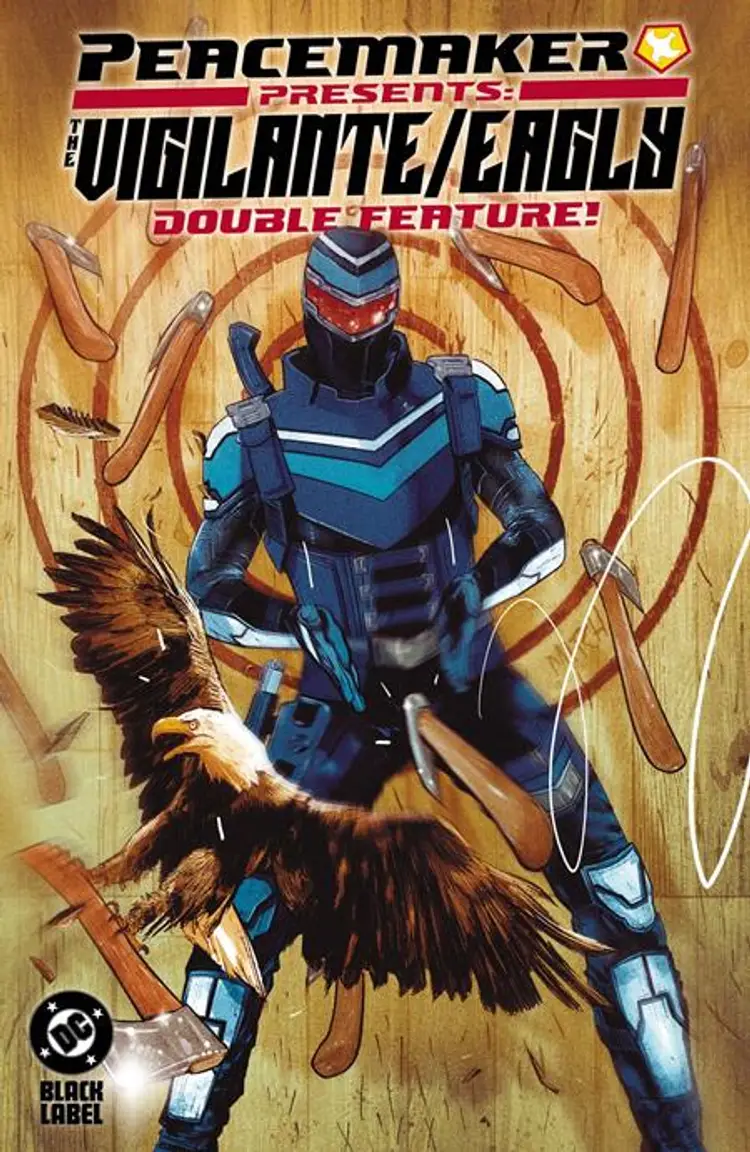 DC Studios' James Gunn steps in as story consultant as fan-favorite characters star in parallel but connected $%&!@#$ stories! One adventure starts when Peacemaker has disappeared, and the Vigilante (Peacemaker's bestest friend) must find him! But Eagly and his sidekick Peacemaker are actually just on vacation, off to the great outdoors for a much-needed break. When their trip is co-opted by a bunch of masked &$#%$@#!, it's up to a certain eagle and his pet human to get themselves (and some dumb, innocent folks) out of danger. Will lives be lost? Duh. Collects PEACEMAKER PRESENTS: THE VIGILANTE/EAGLY DOUBLE FEATURE! #1-5, inspired by Gunn's visionary Peacemaker series on MAX.