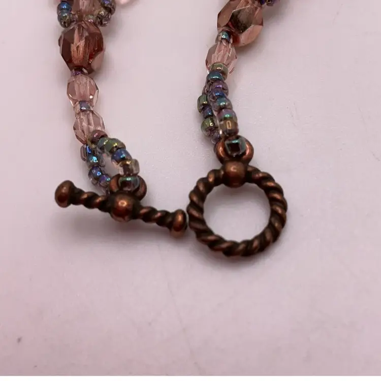 No marking on toggle; toggle has a "distressed" finish and some discoloration. From an artist's Estate in Southern California. In addition to beadwork, she was a professional porcelain painter.