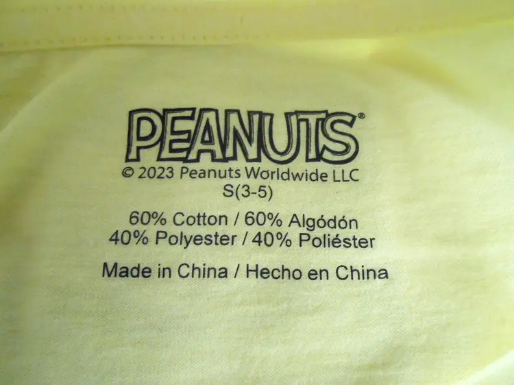 Show off your love for Snoopy, Woodstock, and Rainbow Heart with this colorful Peanuts T-Shirt. The tee features a round neckline and short sleeves for easy wear. It is made from high-quality materials and is designed to fit regular size Juniors. The bright yellow color adds a pop of fun to any outfit and the graphic design is sure to catch everyone's attention. Whether you're a fan of the classic Peanuts comic strip or just love the idea of showing off your love for Snoopy and Woodstock, this tee is the perfect addition to your wardrobe.