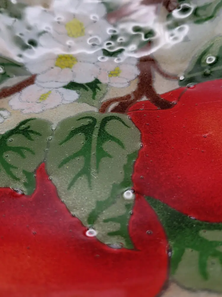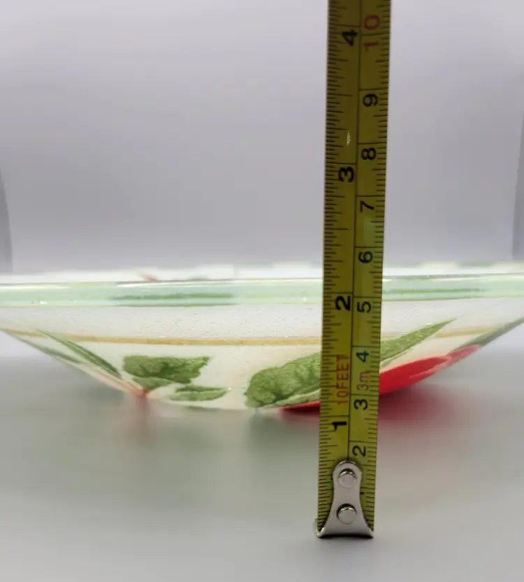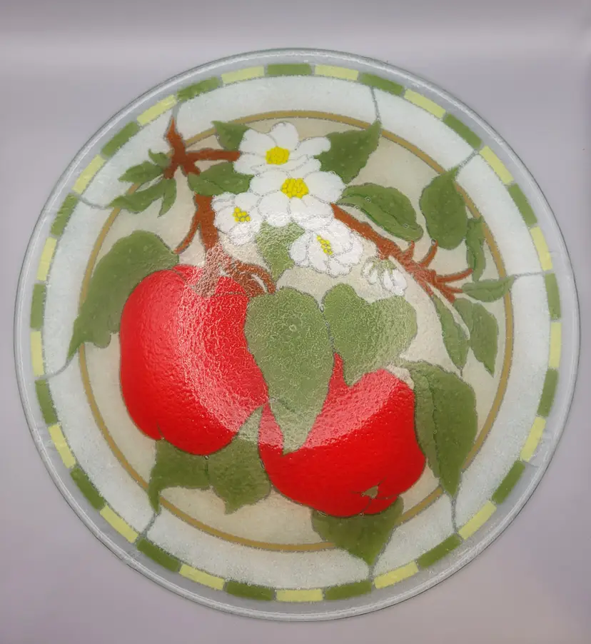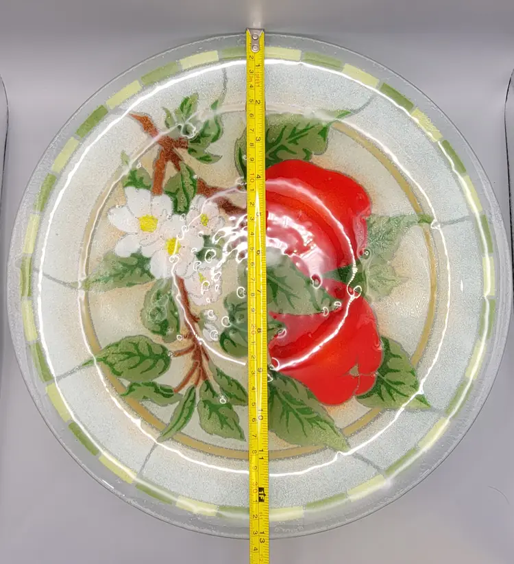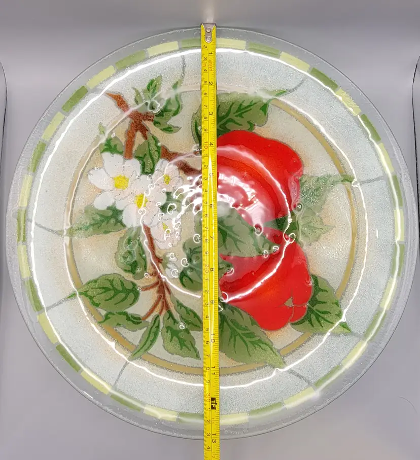 This extra large bowl features 2 apples and apple blossoms on the tree branch. Measures approximately 13 inches in diameter, 2 inches deep and is in good condition with only slight surface scratches (shown in pictures) no chips or cracks. Thank you for looking and have a great day!