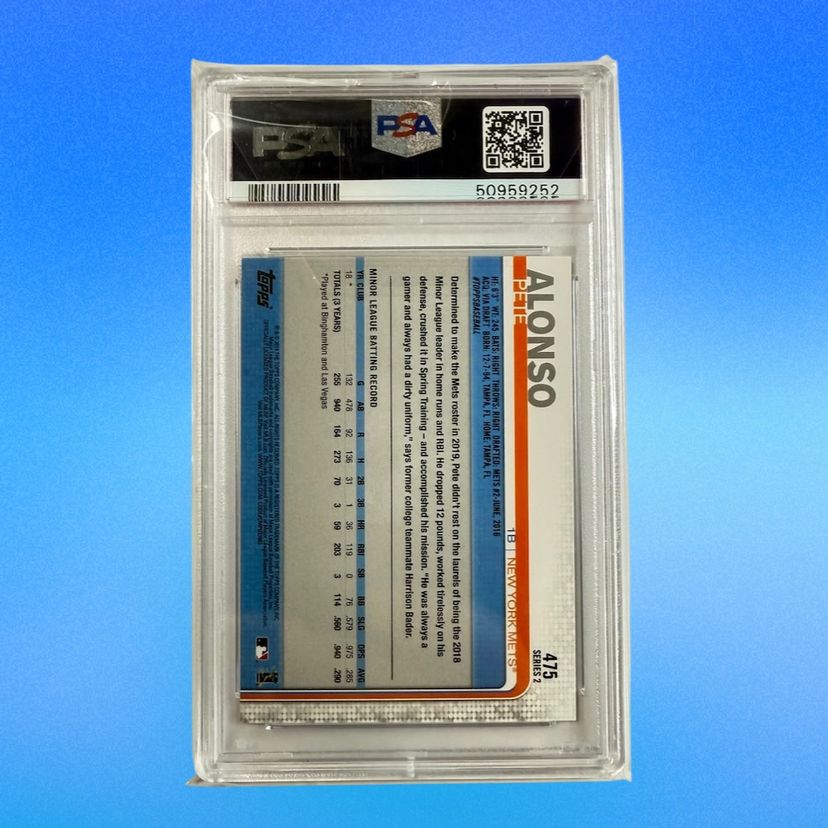 2019 Topps Series 2 Pete Alonso RC PSA Gem Mint 10 #475 2019 Panini Certified Baseball Pete Alonso Green #25 2019 Panini Ascension Baseball Pete Alonso RC #1 2019 Panini Status Baseball Pete Alonso RC Green #7 2019 Panini Limited Baseball Pete Alonso RC #1