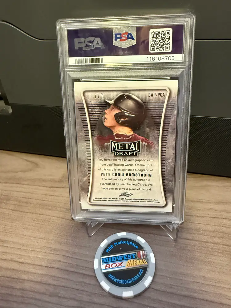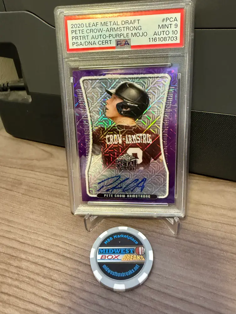 Pete Crow-Armstrong 2020 Leaf Metal Draft Auto Purple Mojo 7/7 PSA AUTO 10