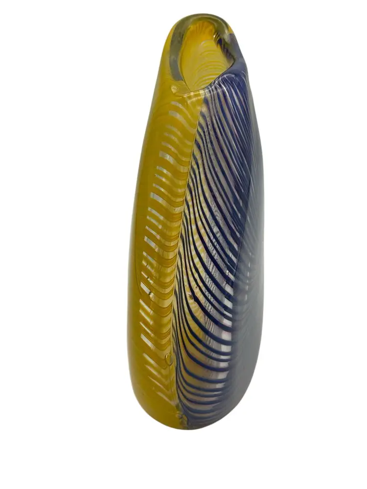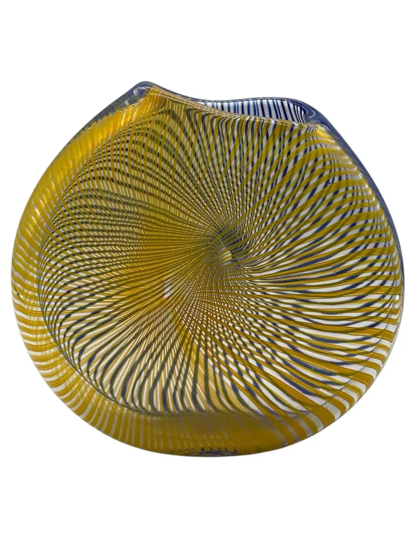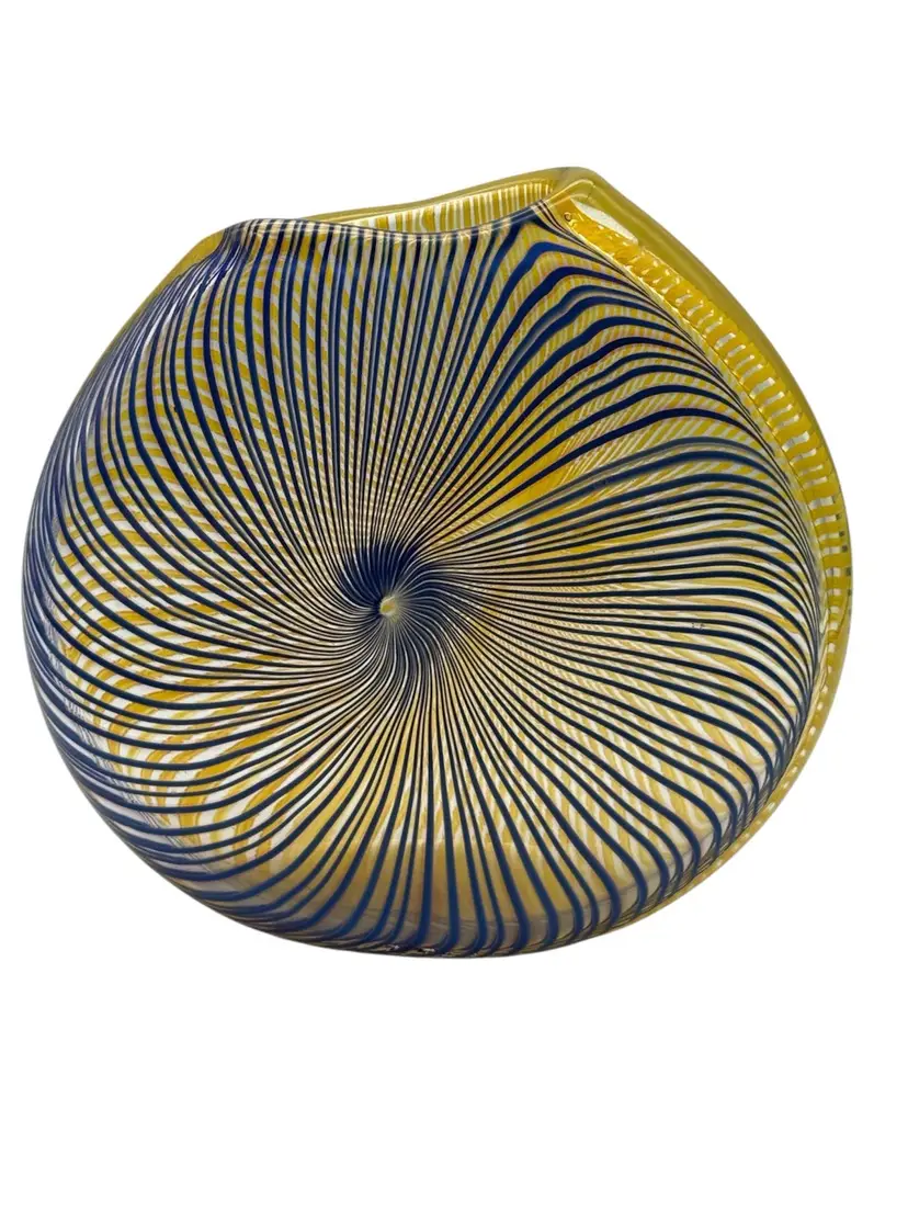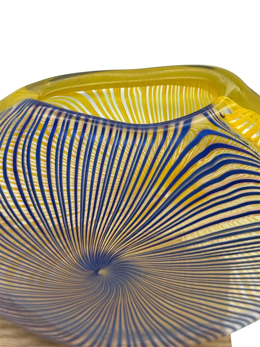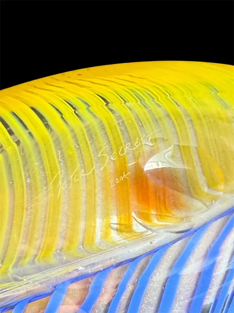 Measures 8” tall, 8” diameter, 2” deep No chips or cracks Signed Peter Secrest 2004 Naples, NY artist