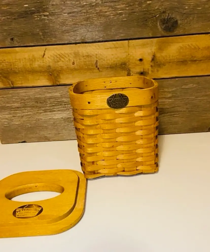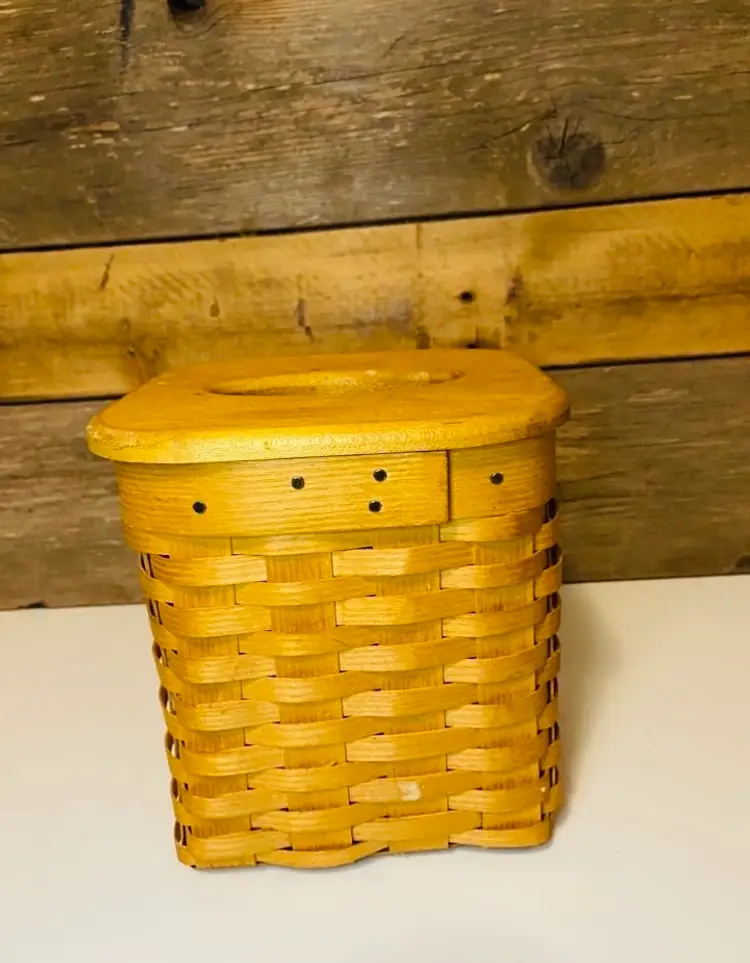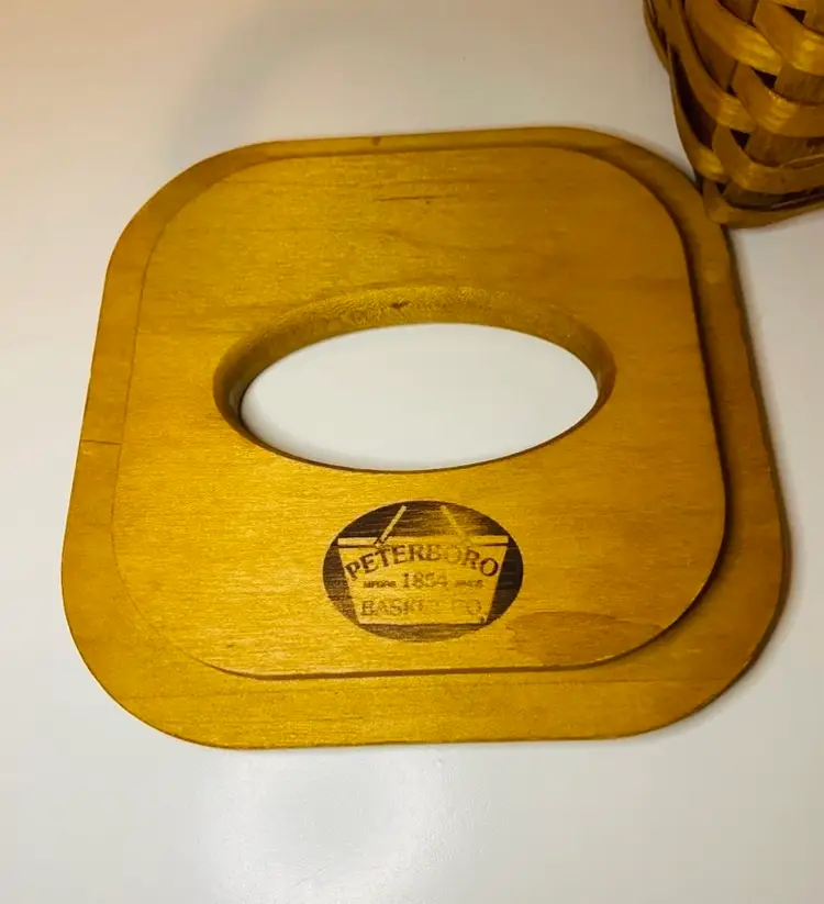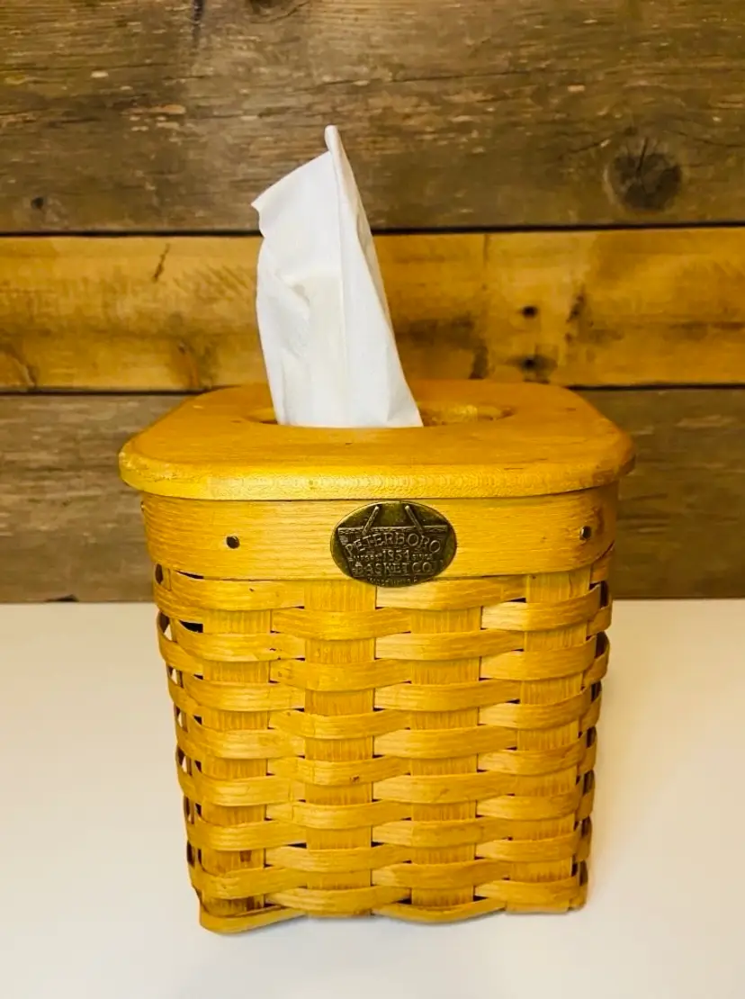 Handcrafted by the renowned Peterboro Basket Company, this woven tissue box holder showcases classic New England basketry and timeless American craftsmanship. Made from hand-woven Appalachian white ash wood, it features a fitted wooden lid, giving it both durability and natural beauty. The warm wood tones and traditional weave add cozy texture to any space, making it a perfect accent for farmhouse, rustic, country cottage, or traditional home decor. In good used condition. No cracks or breakage.