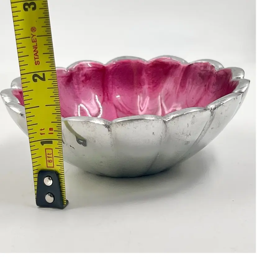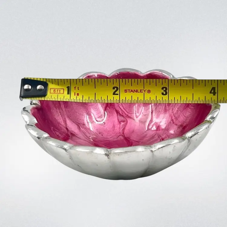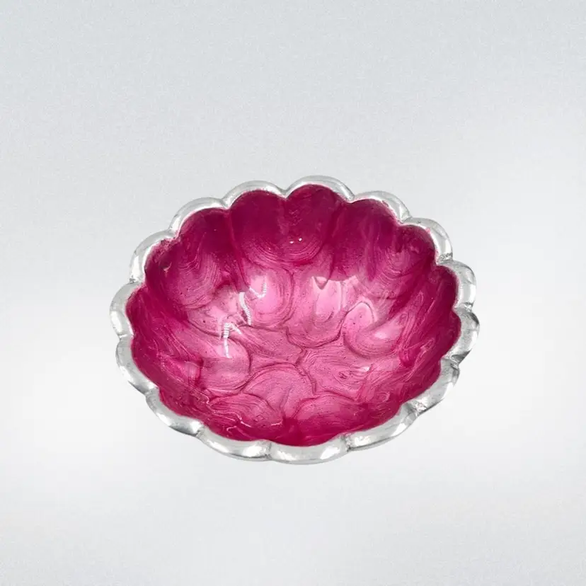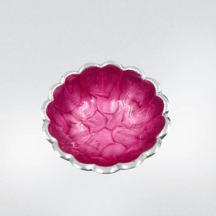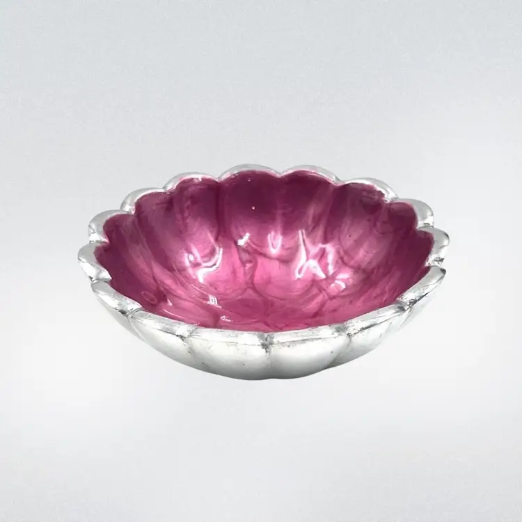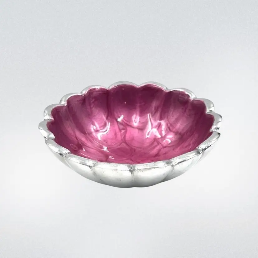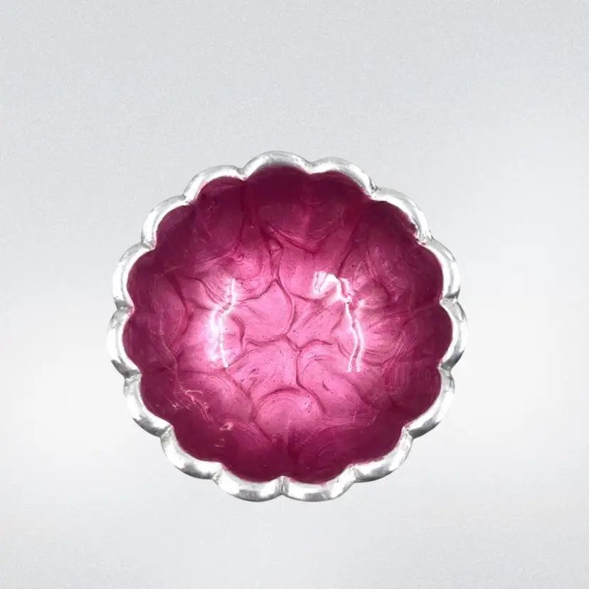 👉Peony Collection Bowl Color Raspberry 👉Hand Casted Aluminum Pink Enamel 👉Infused with Crushed Mother-of-Pearl