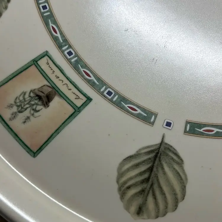 Commemorative chop/ platter, introduced in 1997 and now discontinued. Cream backdrop with herbs and leaves. No damage Measures 12 3/4” x. 12 3/4”