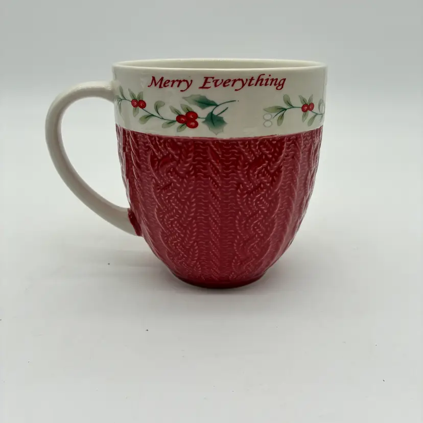 Keywords: Pfaltzgraff, Winterberry, Mug, Christmas, Holiday, Merry Everything, Red, Cable Knit, Ceramic, Dishwasher Safe, Microwave Safe, Coffee Cup, Tea Cup, Winter, Gift