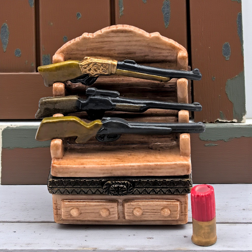PHB Porcelain Trinket Box Gun Rack w/ Shotgun Shell by Midwest of Cannon Falls